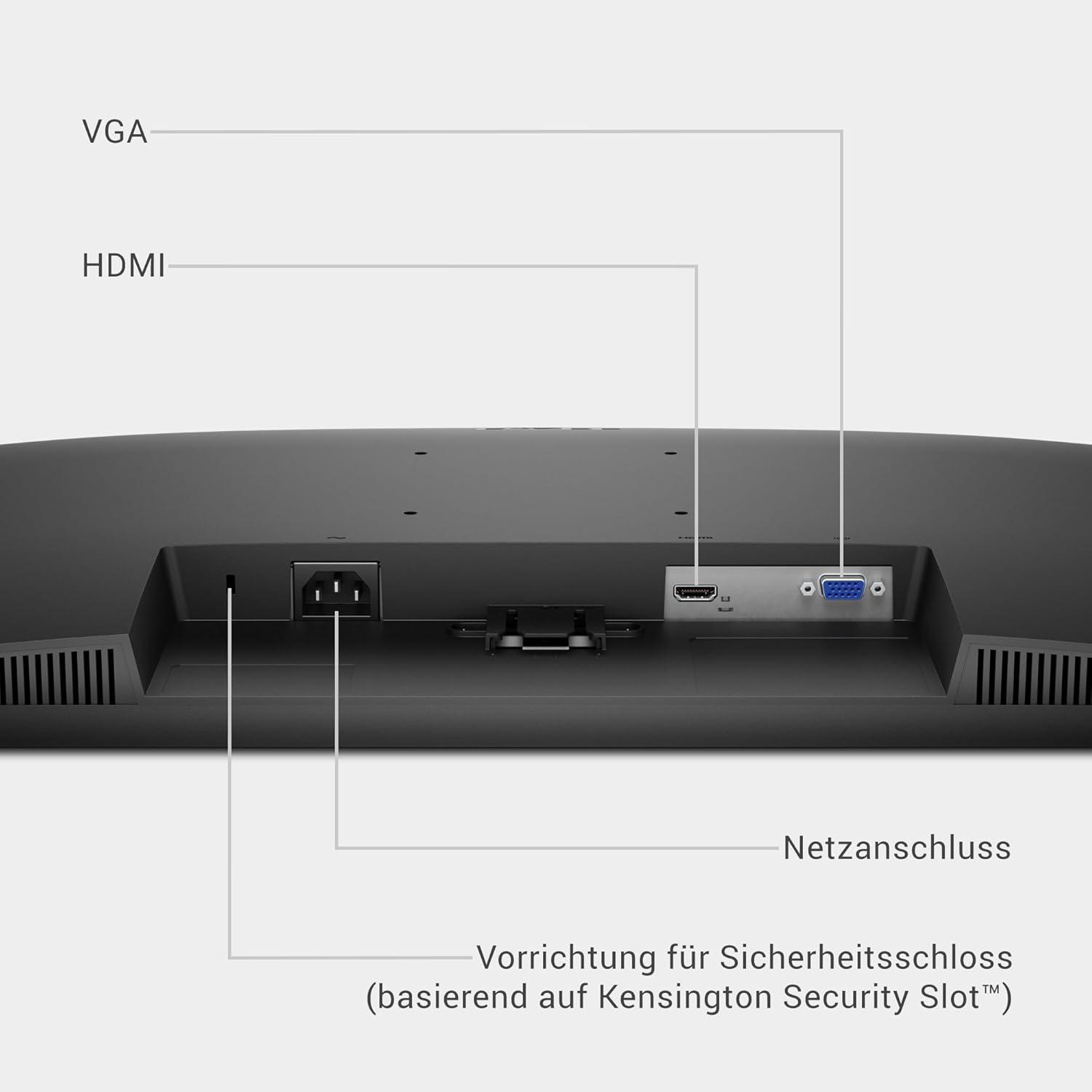 NEIGBAR + VESA-KOMPATIBEL – Neigungsbereich von -5° solange bis 21° sowie VESA-Kompatibilität (100×100 mm). Zwei Videoanschlüsse: 1 HDMI (HDCP 1.4) und 1 VGA.