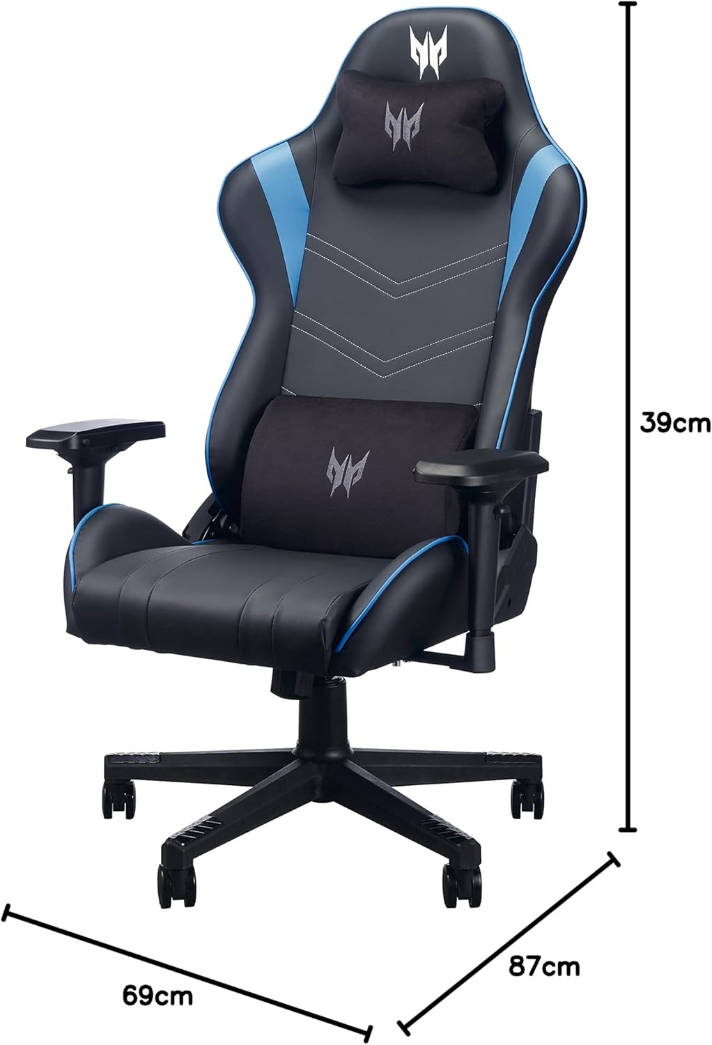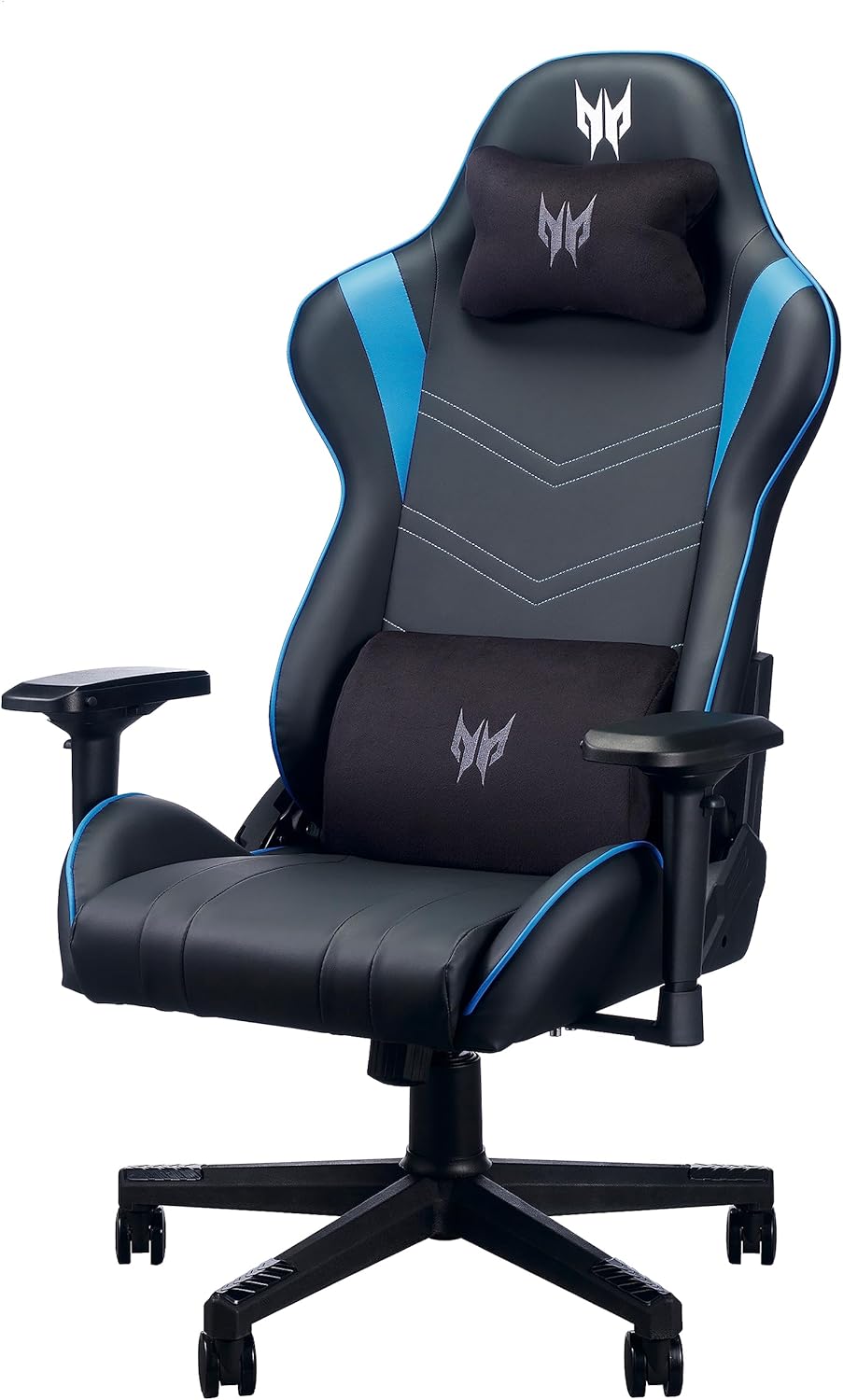 acer Predator Rift Gaming Chair (Removable Lumbar and Headrest, Adjustable 4D Armrests, Two Cushion Cushions, 155° Tilt Backrest, for Users up to 110 kg, Leather Cover) Black/Blue