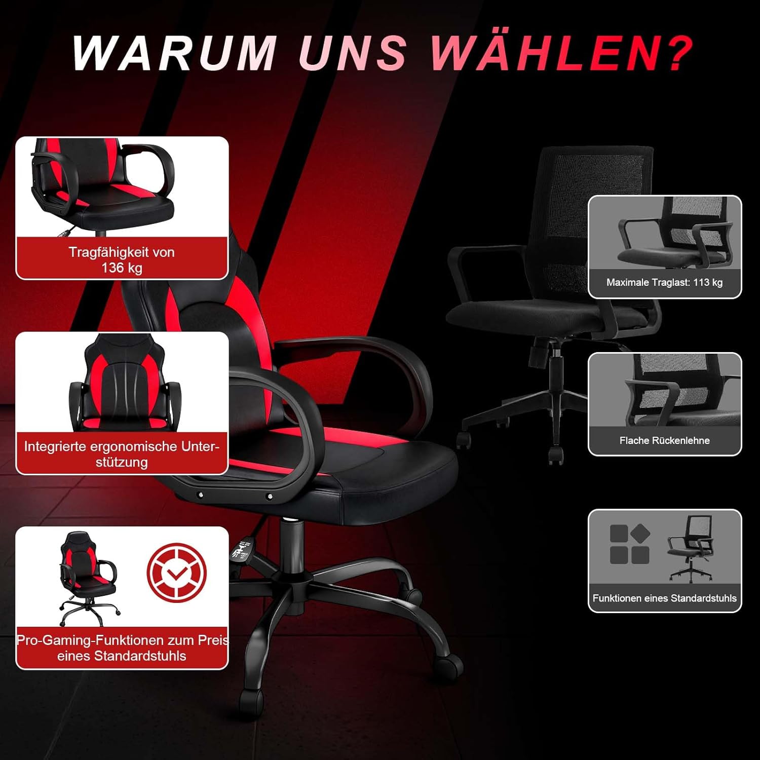 - 💺 Ergonomisches Design: Unterstützt Rücken & Haltung bei langen Gaming-Sessions