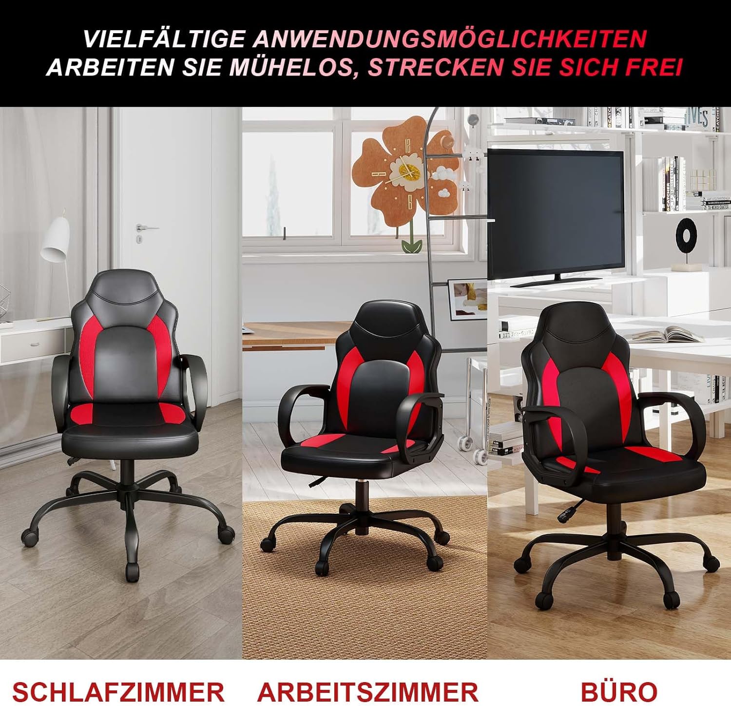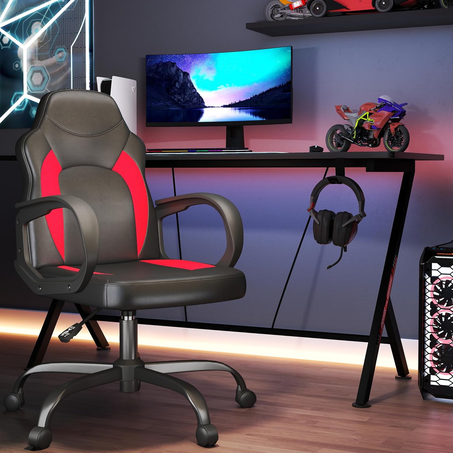 AnyGod Video Game Chair, Ergonomic Computer Game Chair with Lumbar Support, Height Adjustable Swivel Wheels, Home, Office for Adults, Teens, Kids and Gamers (Red)
