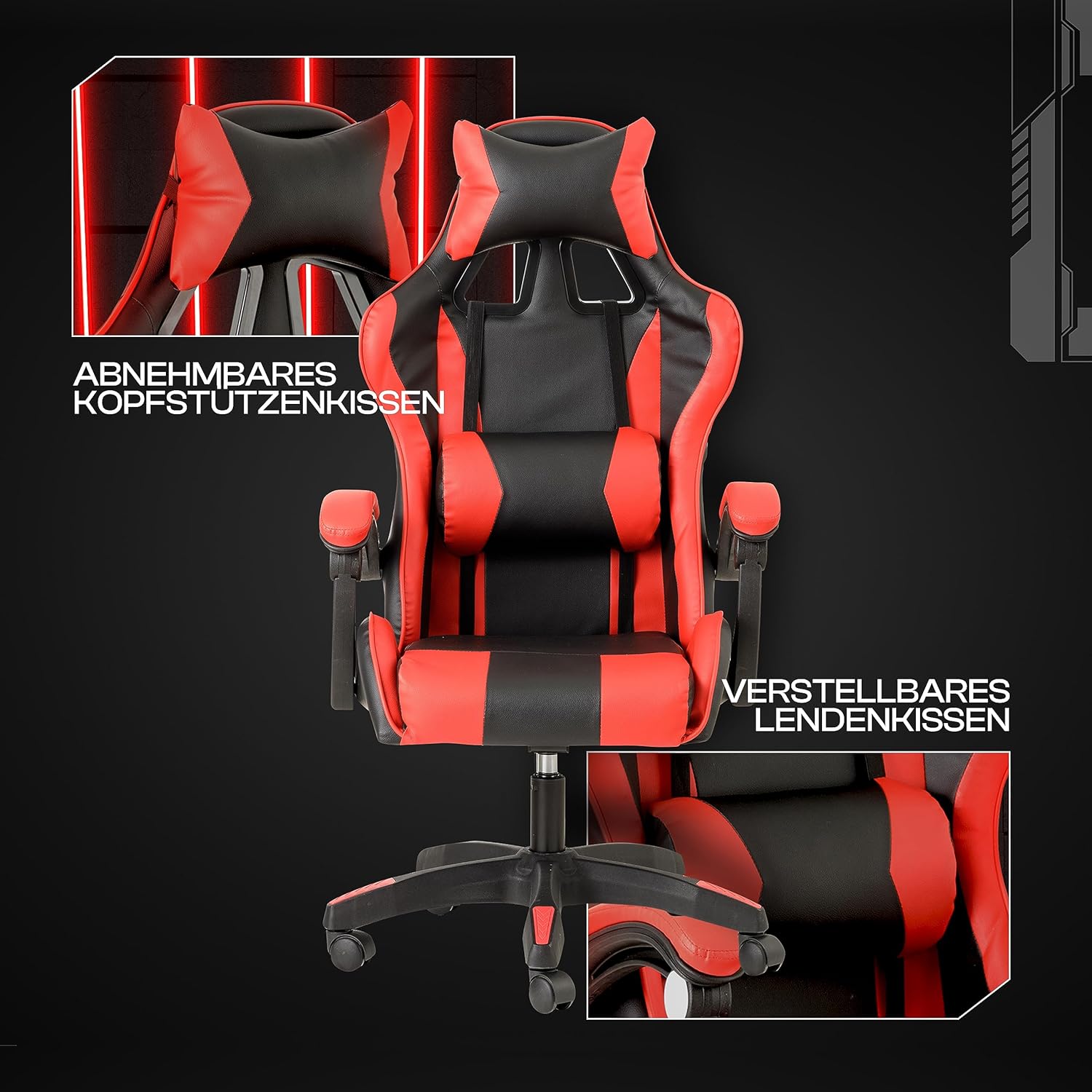 • 💺 Ergonomisches Design: Unterstützt Rücken & Haltung bei langen Gaming-Sessions