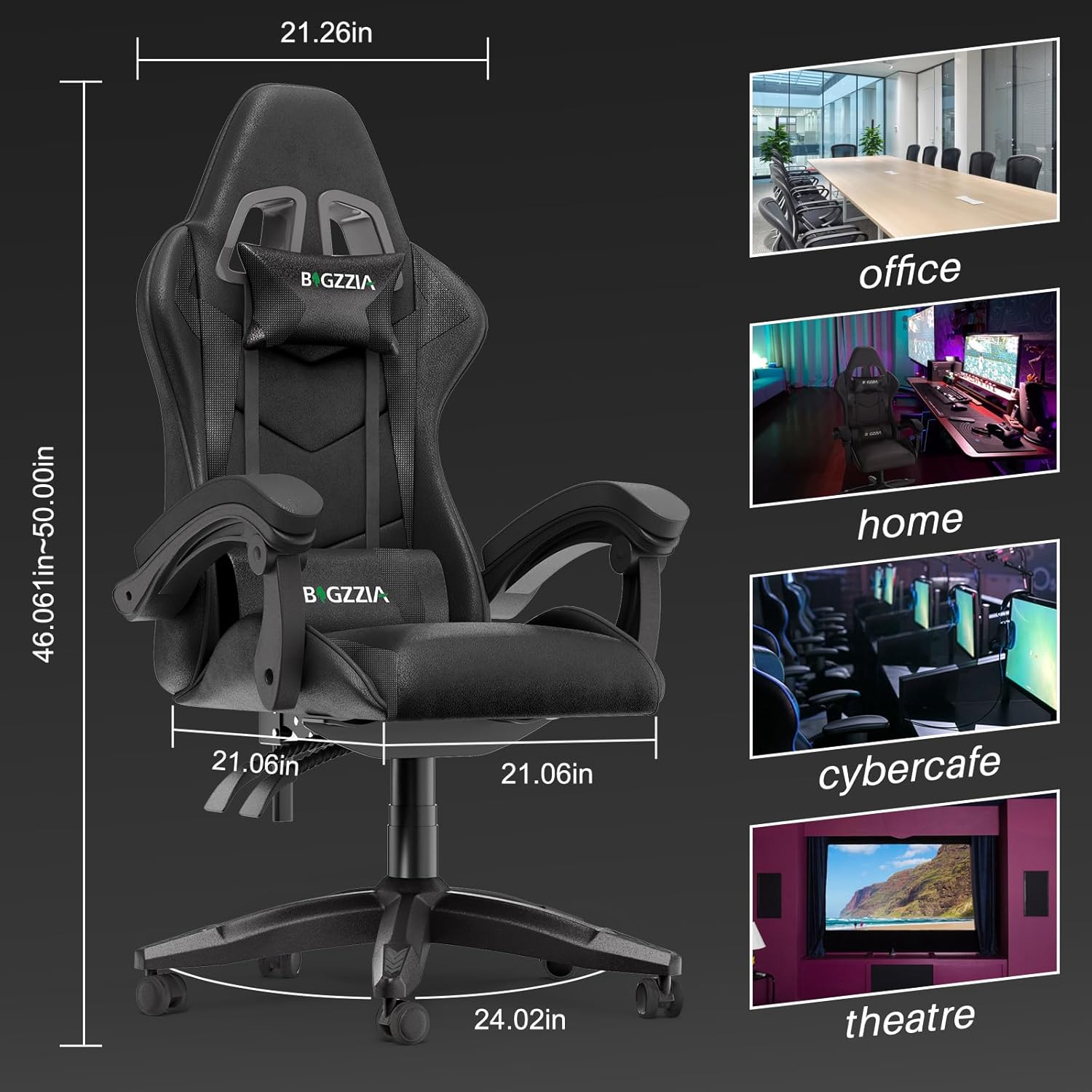 bigzzia Gaming Chair Footrest, Gamer Chairs Ergonomic with Lumbar Cushion + Headrest, Height-Adjustable Office and Computer Chair for Adults, Girls, Boys (Without Footrest, Black)