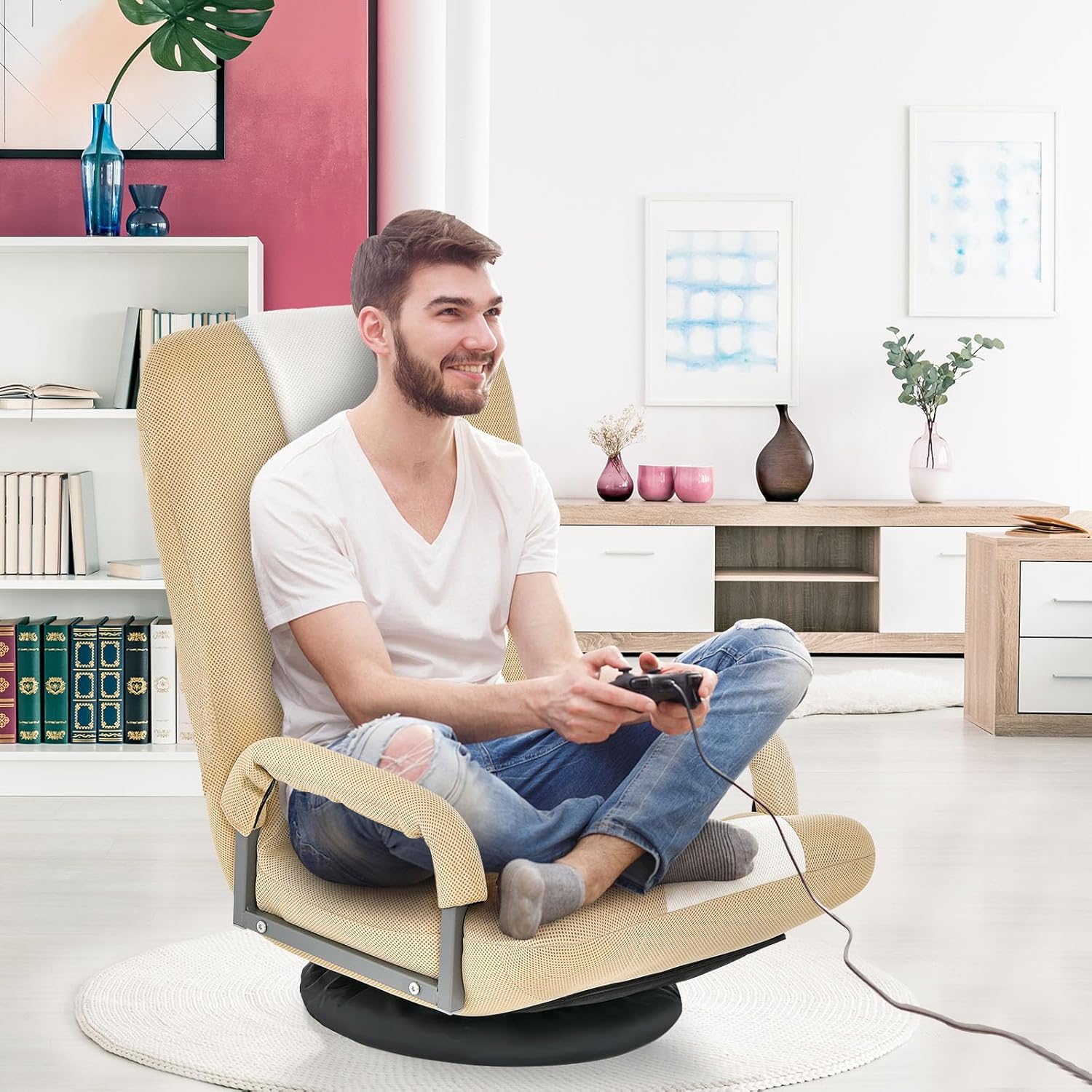 Vielseitiger Einsatz im Alltag: Ob beim Spielen von Handyspielen, beim Fokussieren auf ein geliebtes Buch oder beim Meditieren, der Bodenschaukelstuhl wird Sie begeistern. Darüber hinaus kann er auch als Freizeitstuhl verwendet werden, um Familienmitglieder und Gäste zu unterhalten, die es gewohnt sind, auf dem Boden zu sitzen.