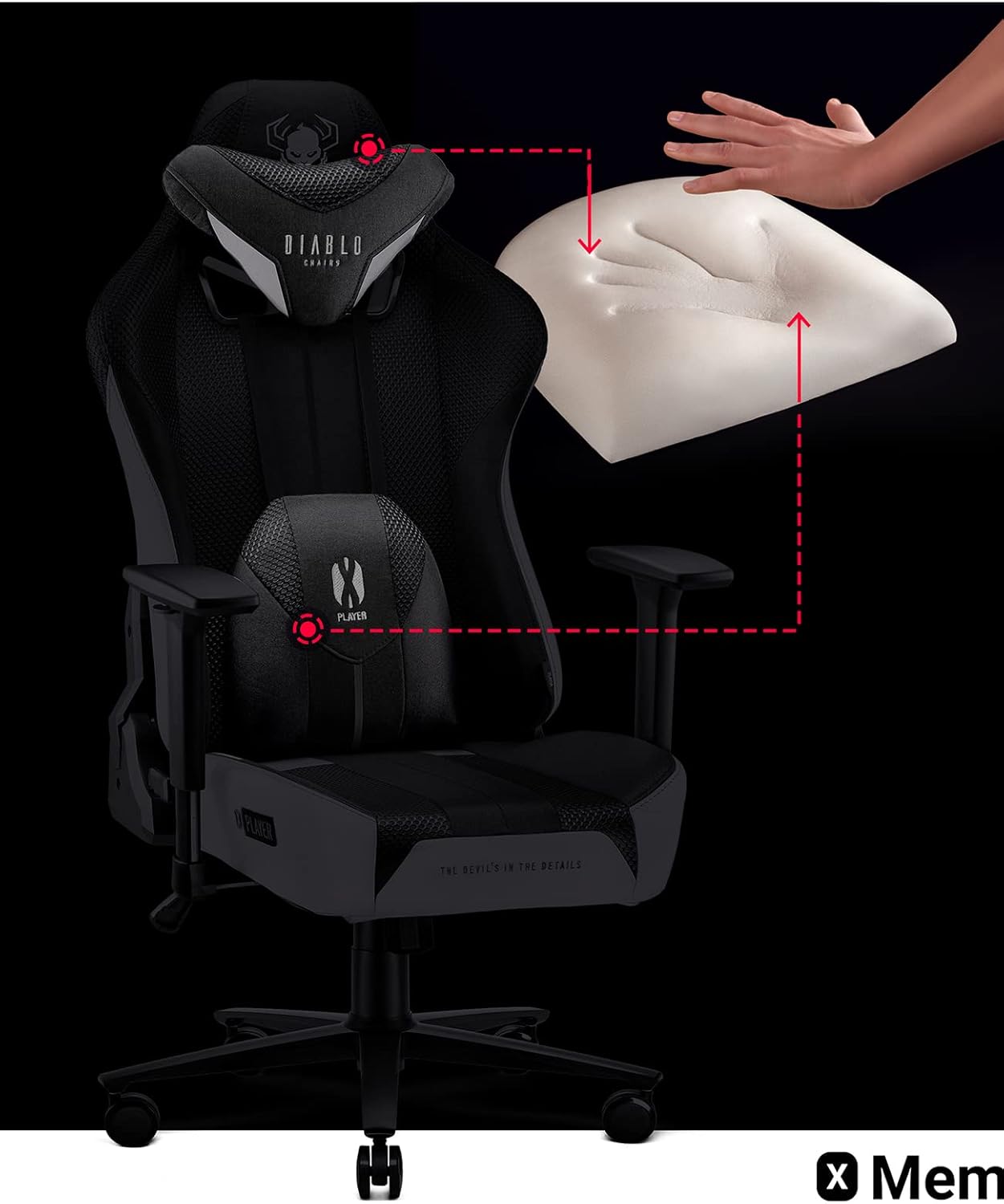 Diablo X-Player Gaming Chair Office Chair Desk Chair Fabric 3D Armrests Ergonomic Design Neck Lumbar Cushion