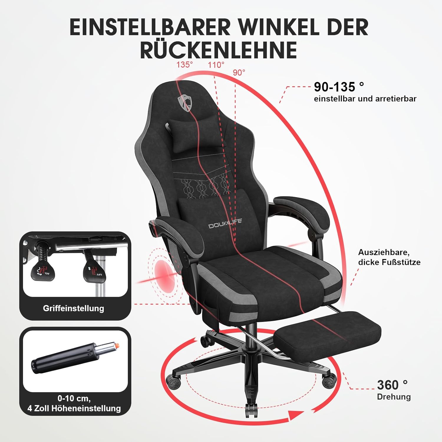 - 🕹️ Verstellbare Armlehnen: Ideal für präzises Gaming und entspanntes Sitzen