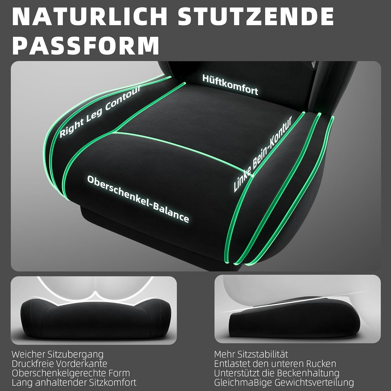 - 💺 Ergonomisches Design: Unterstützt Rücken & Haltung bei langen Gaming-Sessions