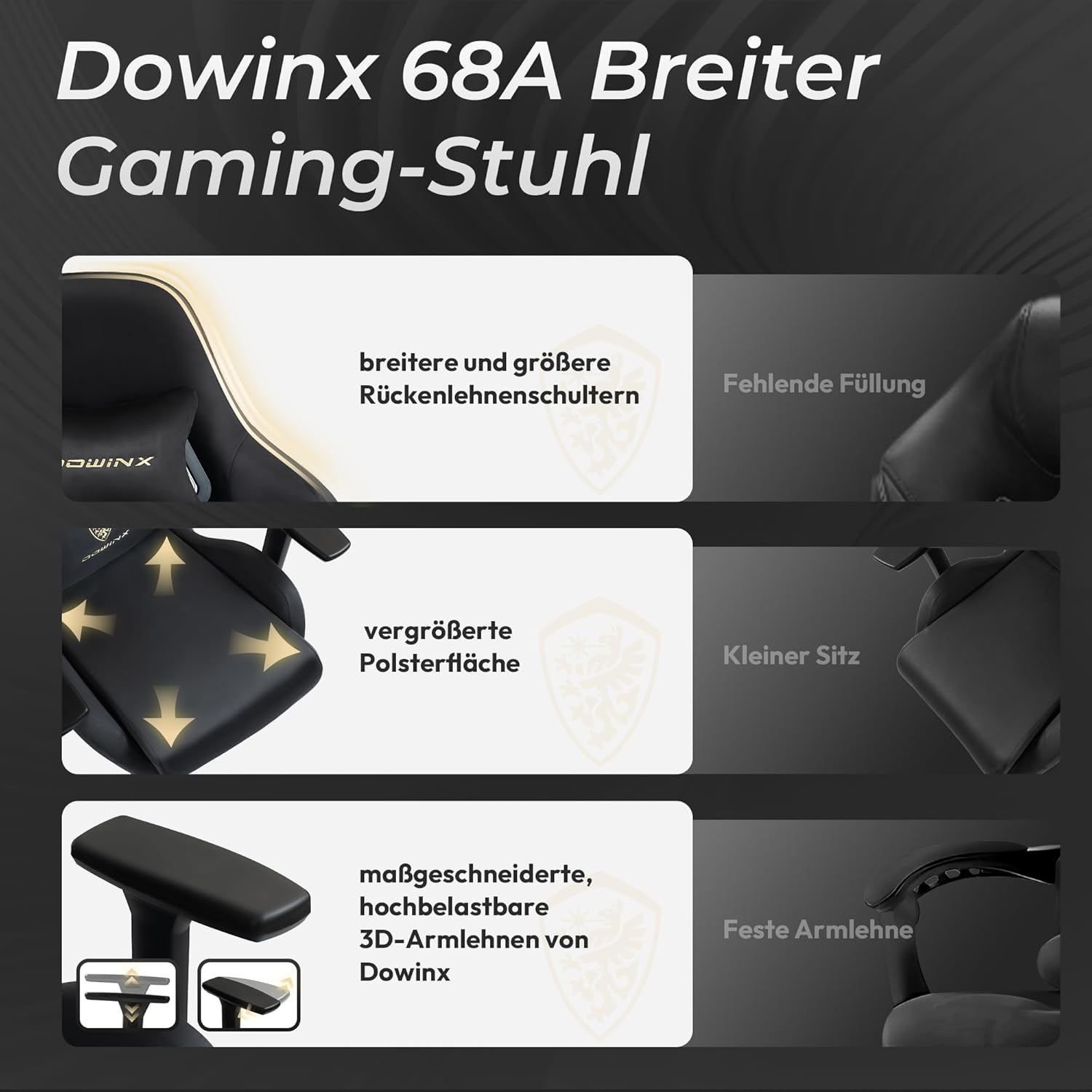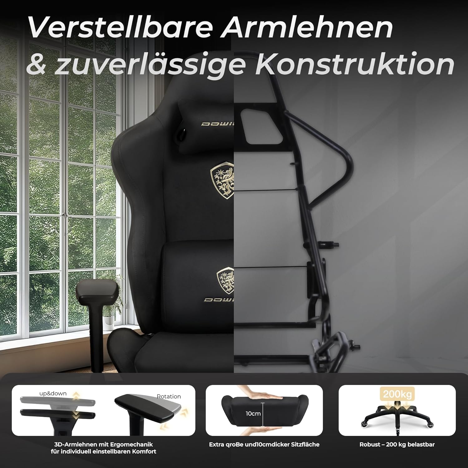 - 🕹️ Verstellbare Armlehnen: Ideal für präzises Gaming und entspanntes Sitzen