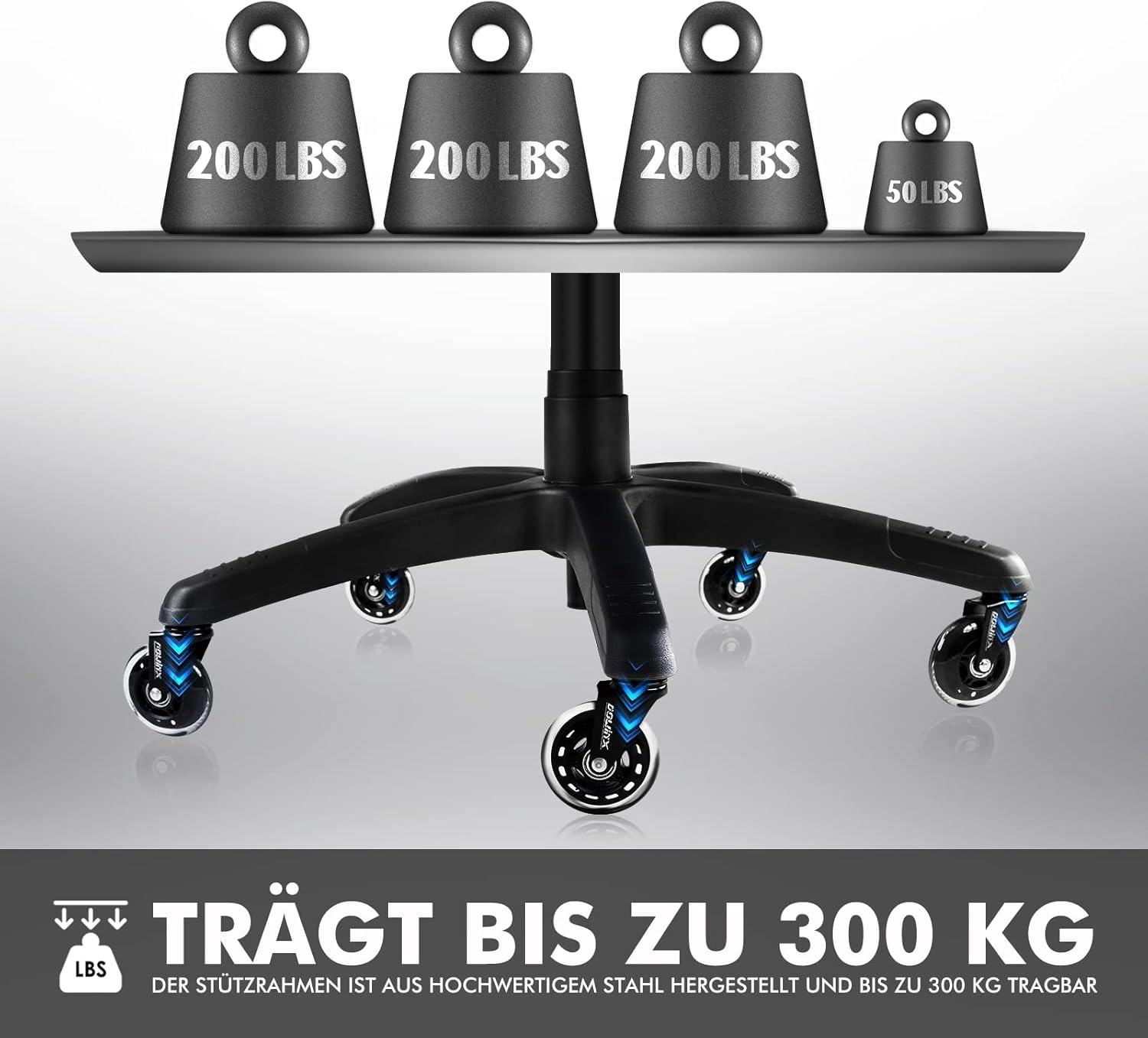 VERSTELLBARER GAMING-STUHL – Die Rückenlehne lässt sich stufenlos um 155° neigen – ideal zum Sitzen, Liegen oder Ausruhen. Der Gaslift der Klasse 4 ermöglicht eine stabile und sichere Höhenverstellung. Hochwertige PU-Räder sorgen für leises, leichtes Gleiten auf verschiedenen Böden und schonen gleichzeitig empfindliche Oberflächen