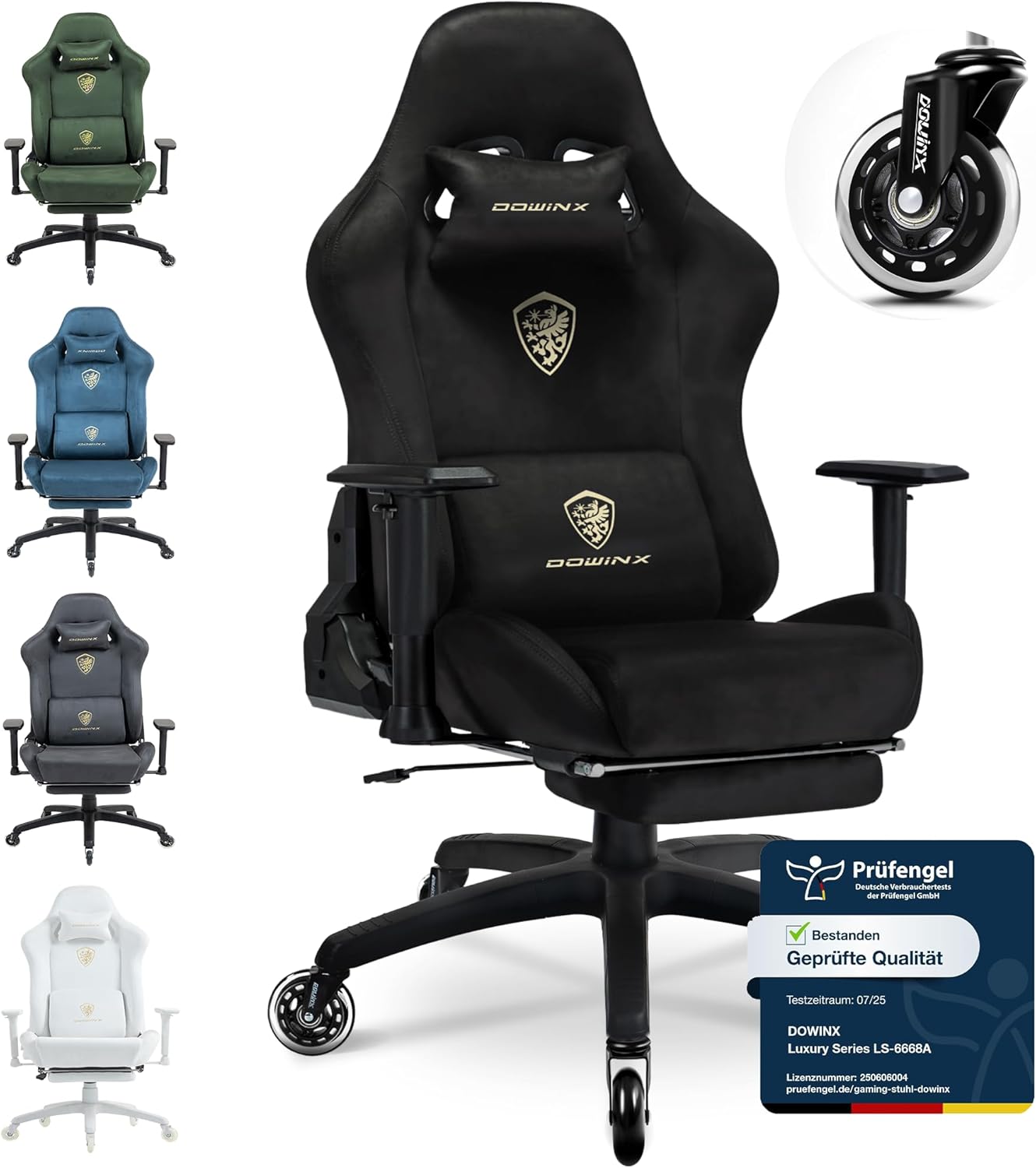 Dowinx Gaming Chair, Breathable and Ergonomic Office Chair Made of Microfibre Velour, Soft Seat Feel Like Fur, Adjustable Desk Chair with Footrest, Black