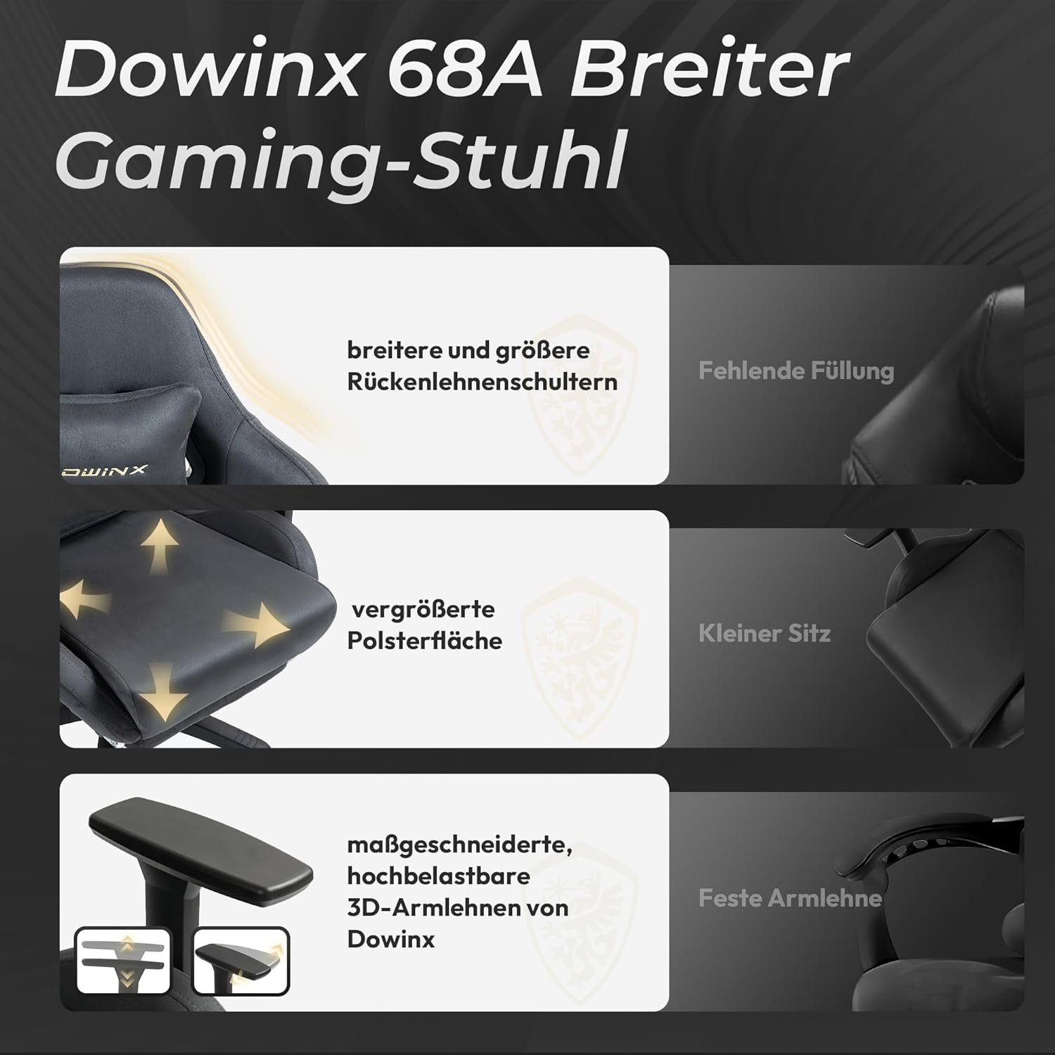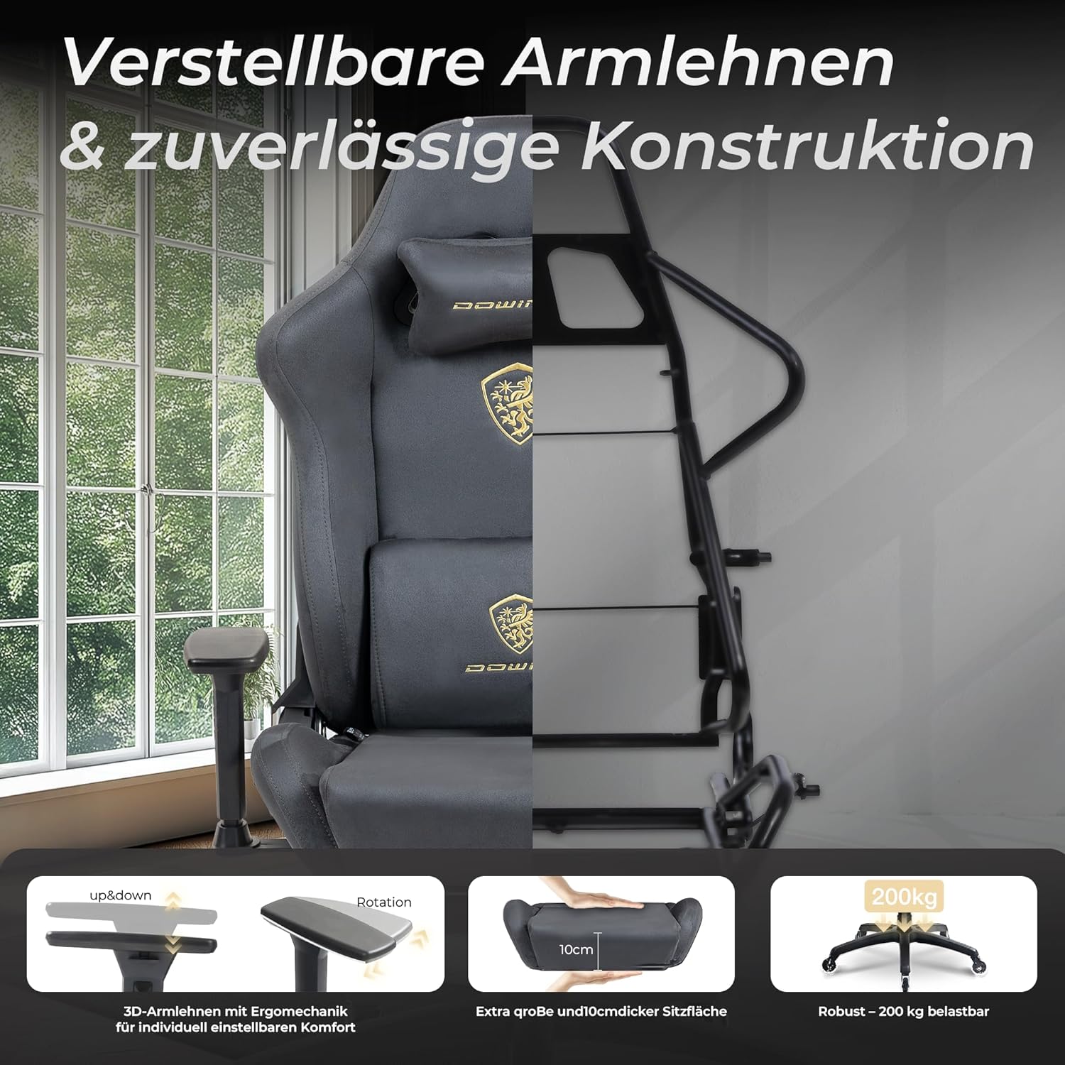 - 🕹️ Verstellbare Armlehnen: Ideal für präzises Gaming und entspanntes Sitzen