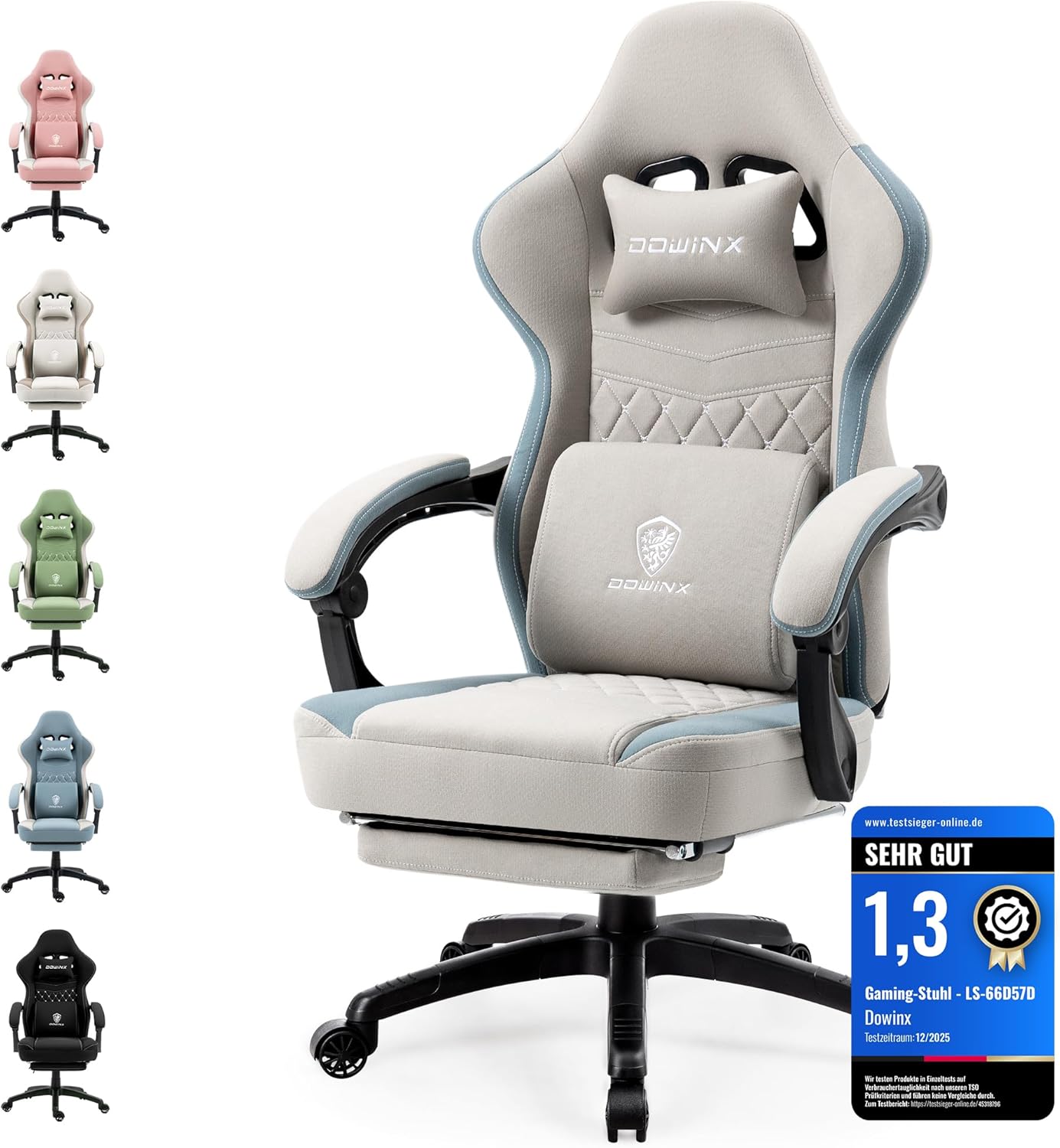 Dowinx Gaming Chair, Fabric Office Chair with Pocket Spring Cushion, Massage Gamer Chair with Headrest, Ergonomic Racing Gaming Chair with Footrest (Grey)