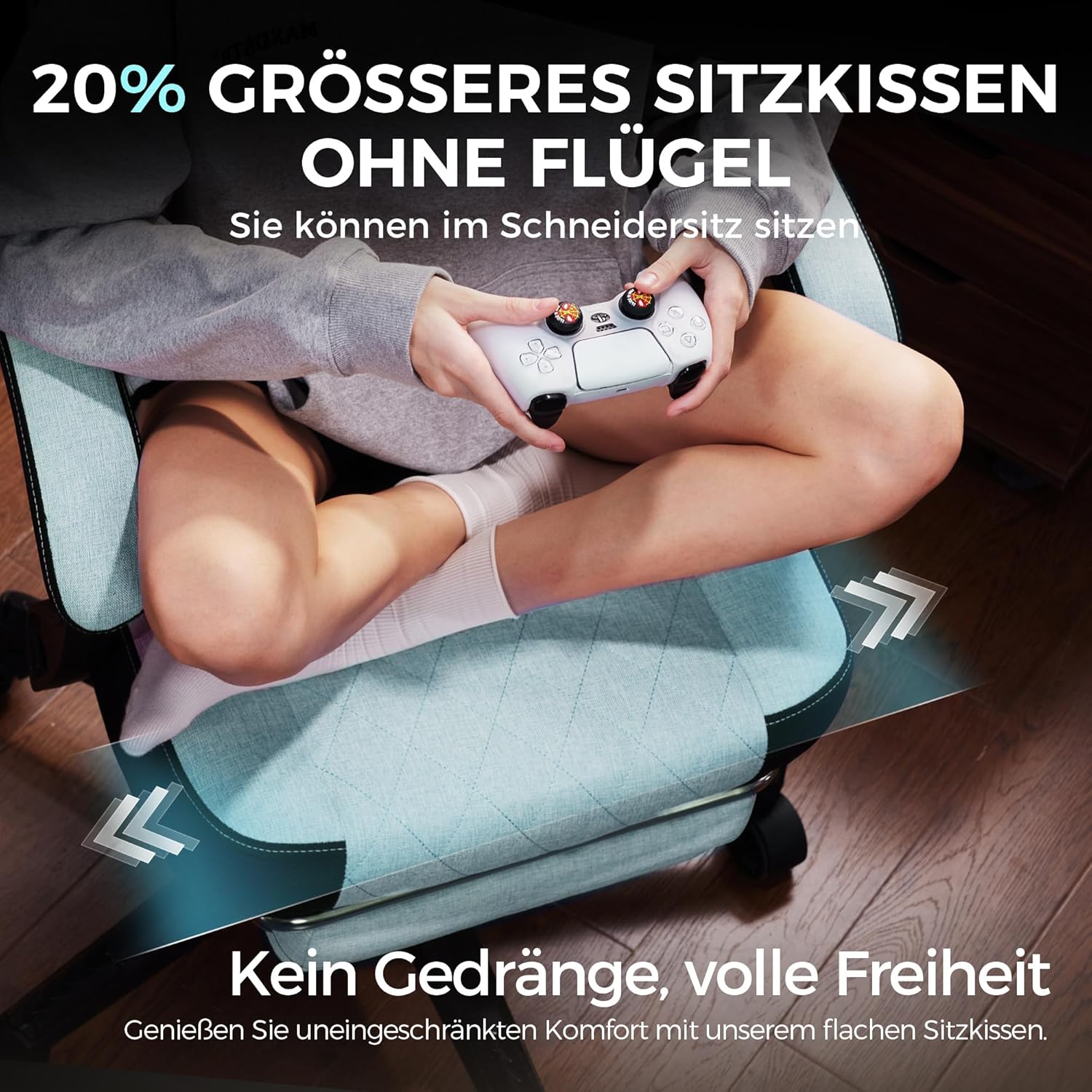 ERGONOMIC & FLAT SEAT DESIGN Our computer gaming chair is suitable for players of all sizes and features a seat design without armrests, which provides plenty of space so you can freely choose your sitting position and get a comfortable sitting experience. Enjoy the freedom to stretch, cross your legs or simply relax comfortably.