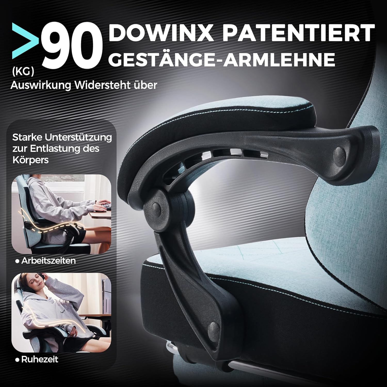 SOFA COMFORT WITH POCKET SPRING The DOWINX gaming chair is equipped with an advanced pocket spring cushion that gives you the comfort of a sofa while sitting. The individual springs distribute pressure evenly for better grip and a more ergonomic fit. Ideal for long gaming sessions.
