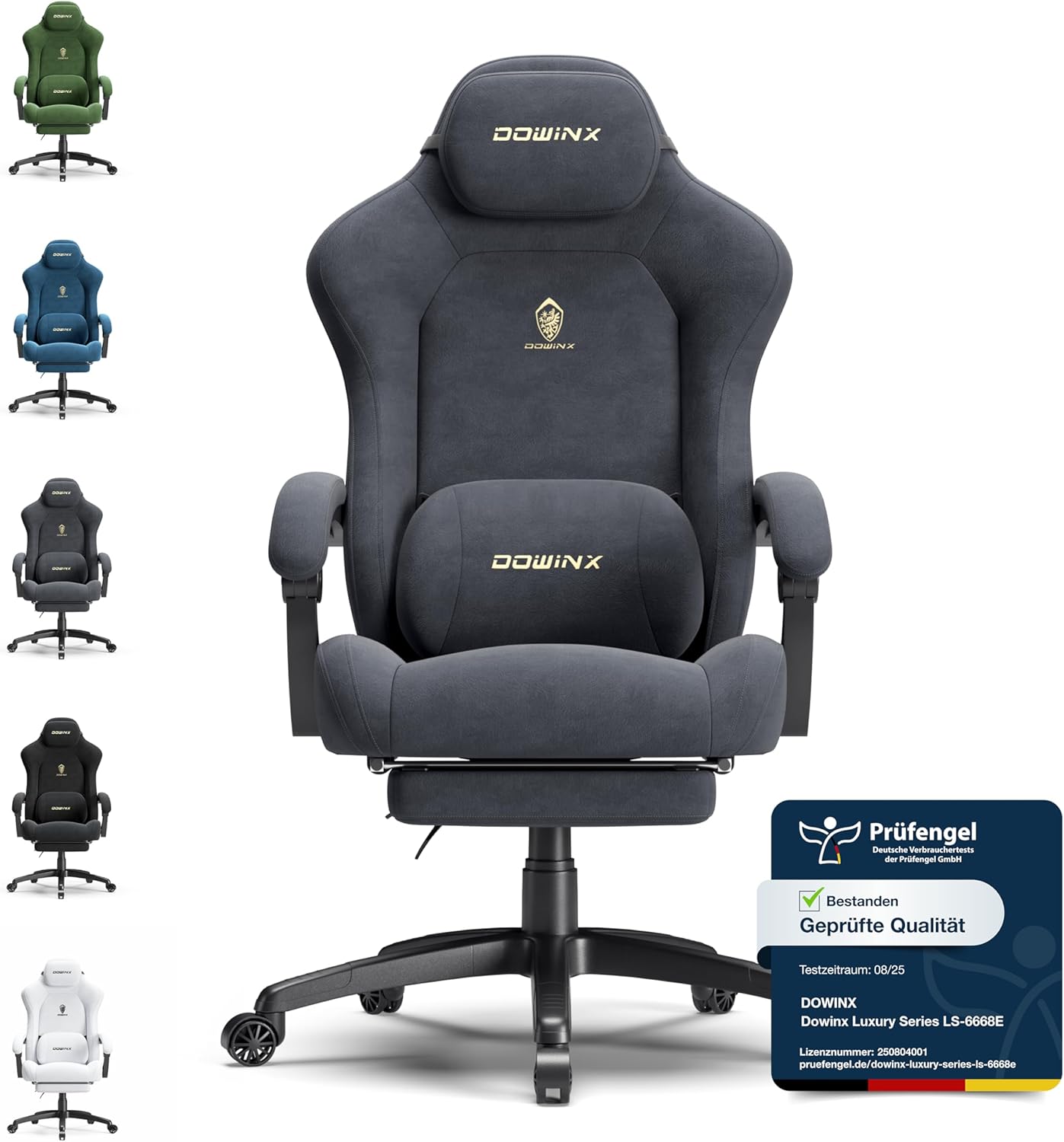 Hochwertig geprüft – 95 von 100 Punkten: Dieser Gaming-Stuhl wurde von der Prüfengel GmbH unabhängig getestet und erhielt 95 von 100 Punkten. Bewertet wurden Ergonomie, Stabilität und Materialqualität – ein verlässlicher Beweis für die Qualität des Produkts.