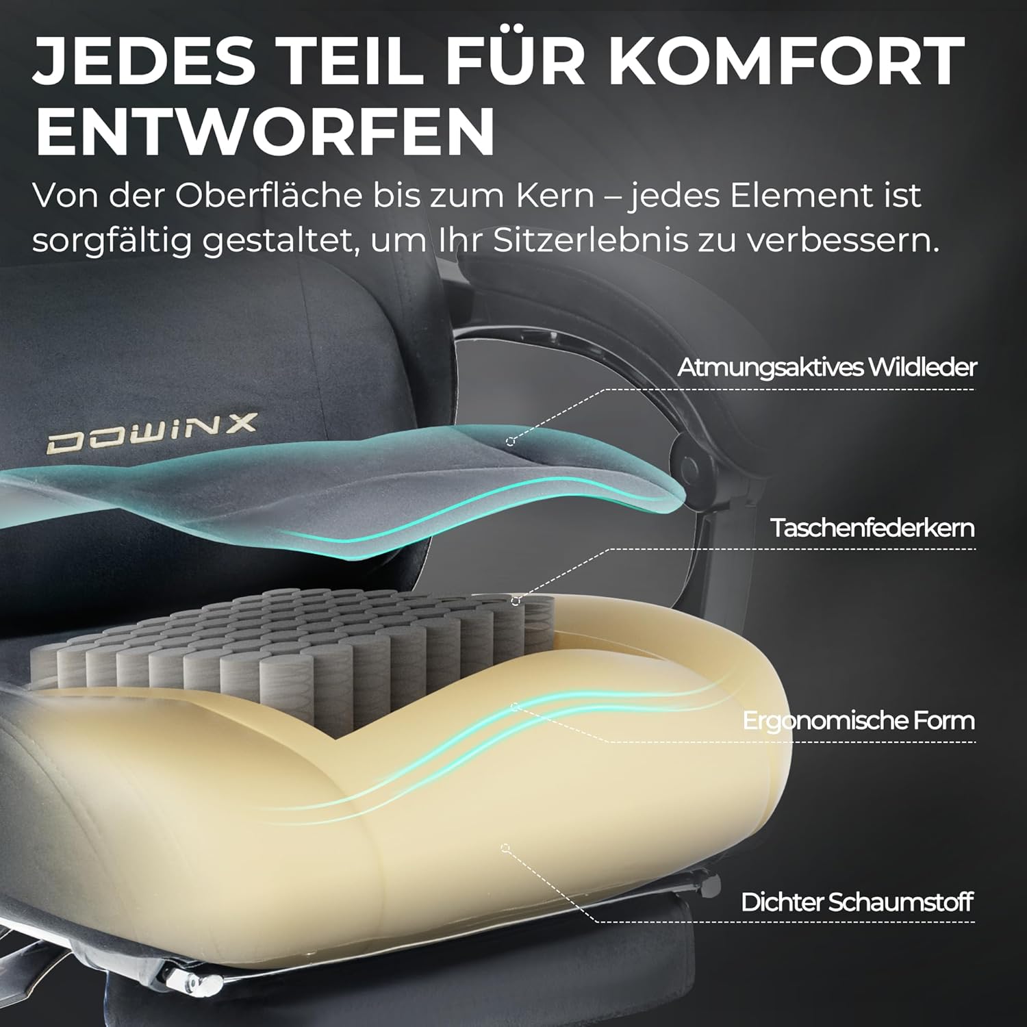 - 😌 Hochwertige Polsterung: Optimaler Komfort ohne Druckstellen