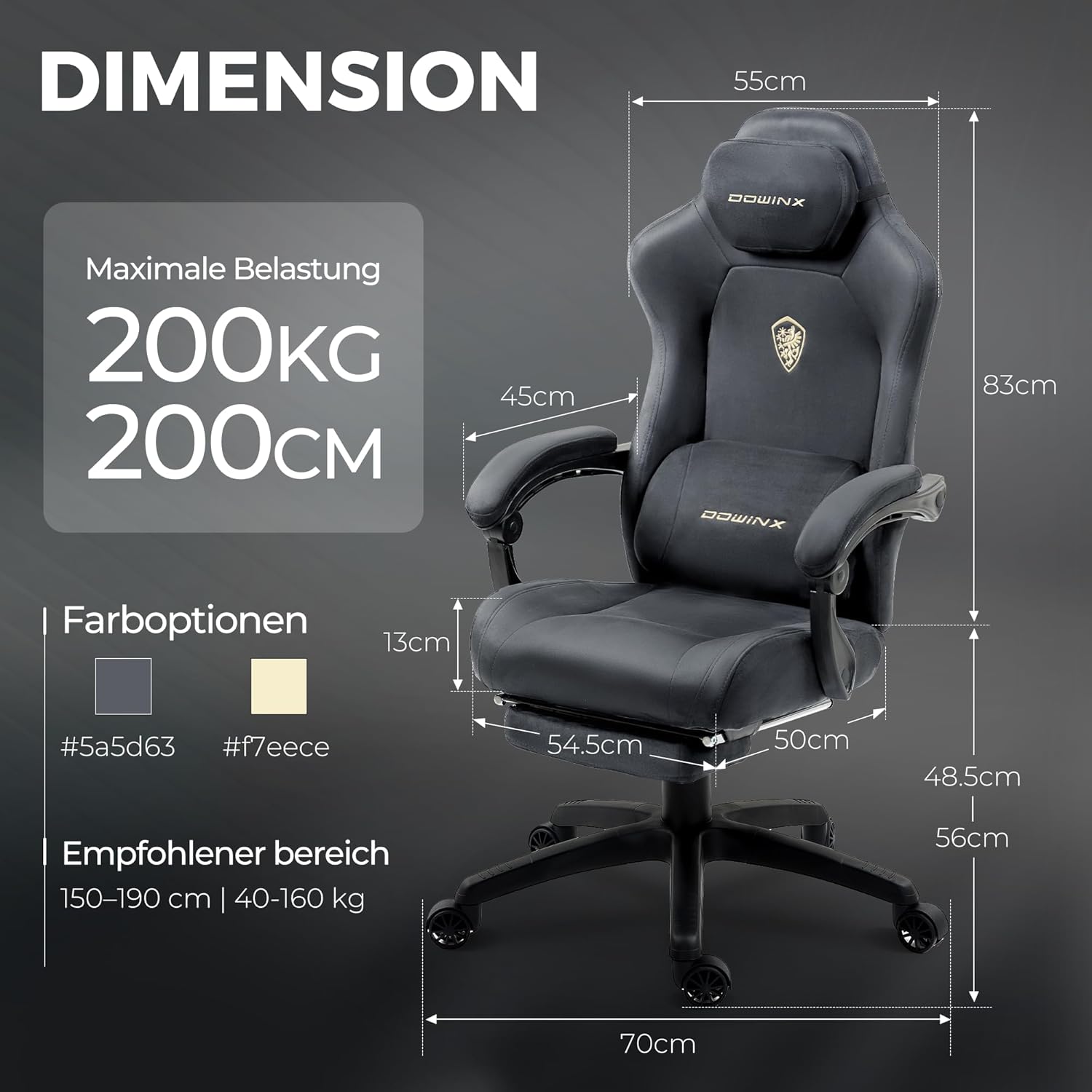 Mikrofaser-Velours für alle Jahreszeiten: Das weiche, hautfreundliche Material sorgt dafür, dass Sie im Sommer nicht schwitzen und im Winter angenehm warm sitzen. Darüber hinaus ist die Oberfläche wasserabweisend, schmutzabweisend und behält ihre elegante Optik – perfekt für Gaming oder Büro.