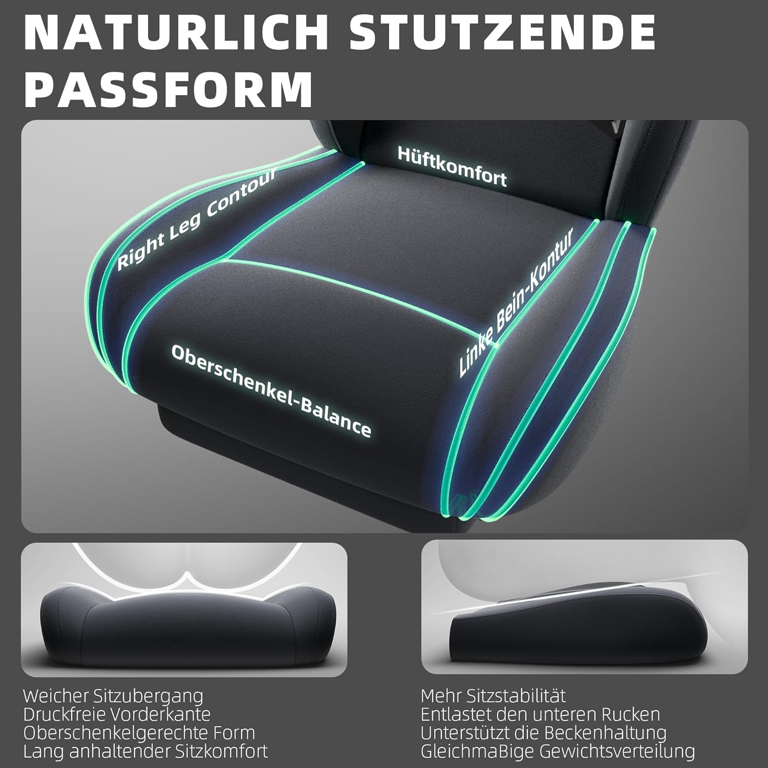 - 💺 Ergonomisches Design: Unterstützt Rücken & Haltung bei langen Gaming-Sessions