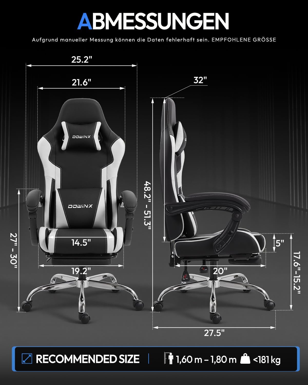 - 🕹️ Verstellbare Armlehnen: Ideal für präzises Gaming und entspanntes Sitzen