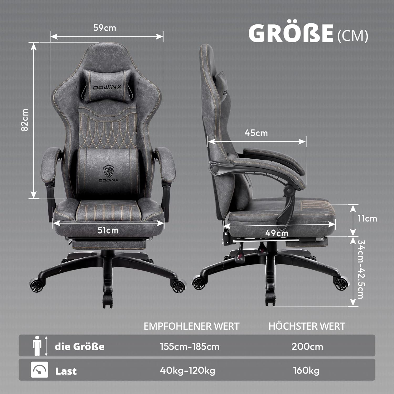 - 🕹️ Verstellbare Armlehnen: Ideal für präzises Gaming und entspanntes Sitzen