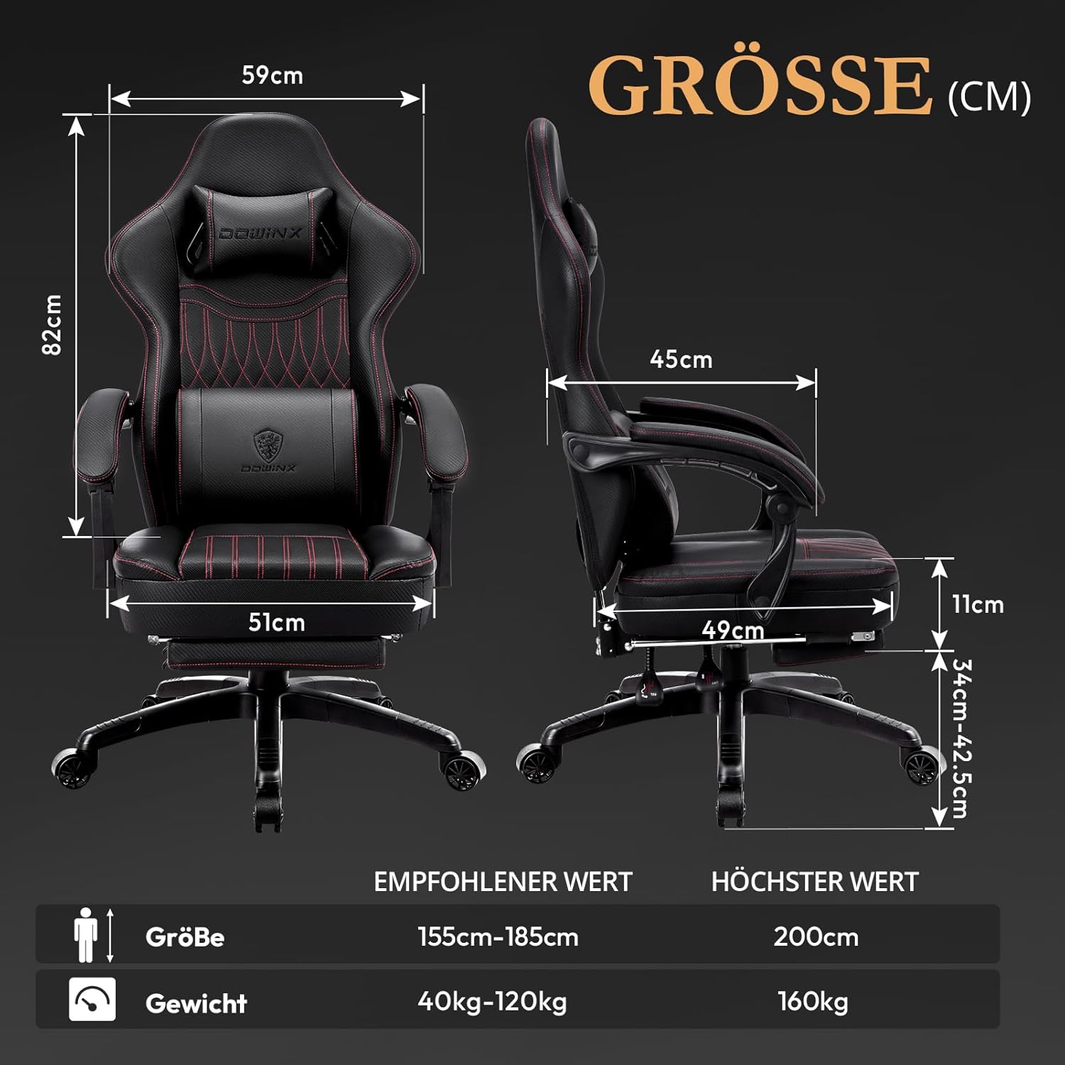 - 🕹️ Verstellbare Armlehnen: Ideal für präzises Gaming und entspanntes Sitzen