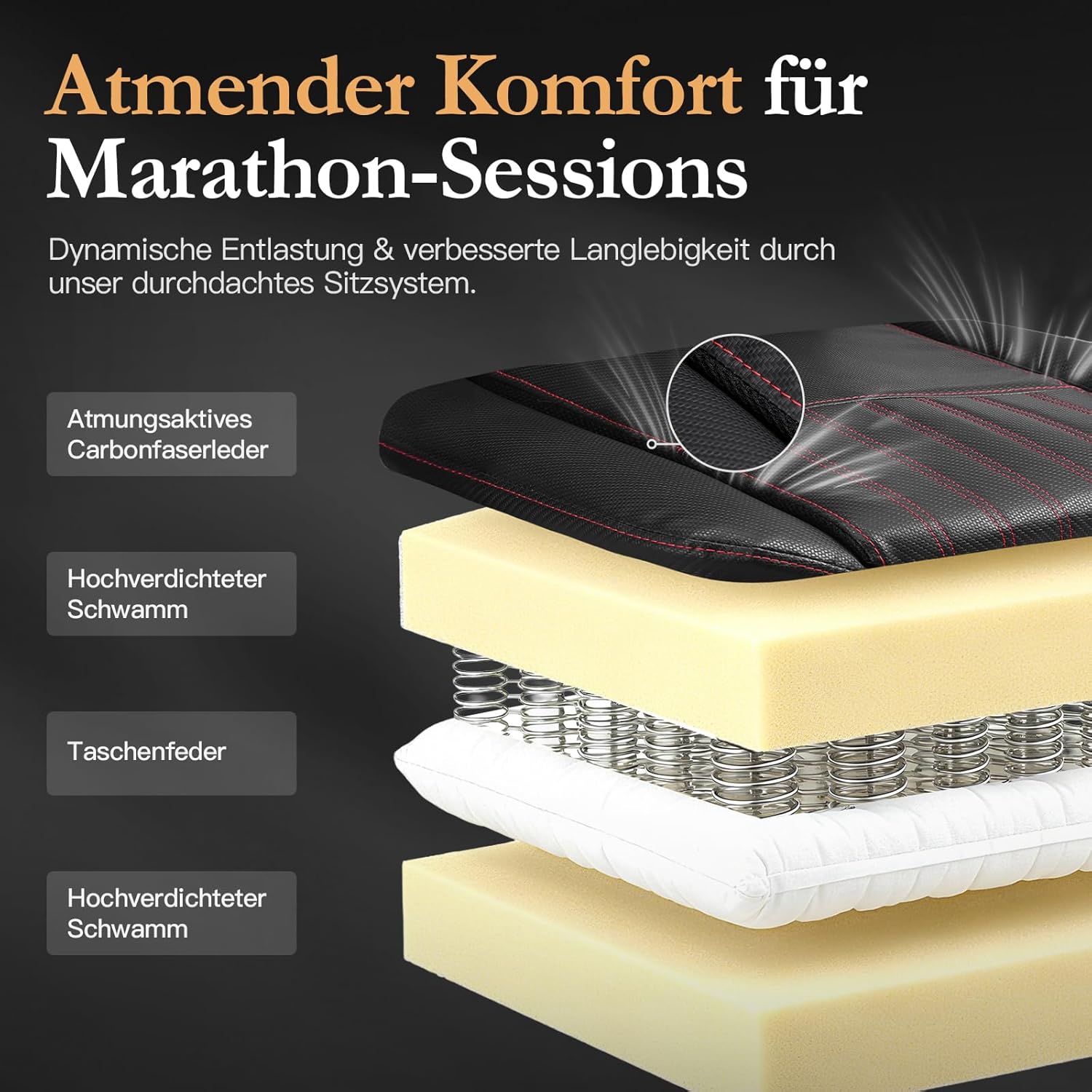 - 💺 Ergonomisches Design: Unterstützt Rücken & Haltung bei langen Gaming-Sessions