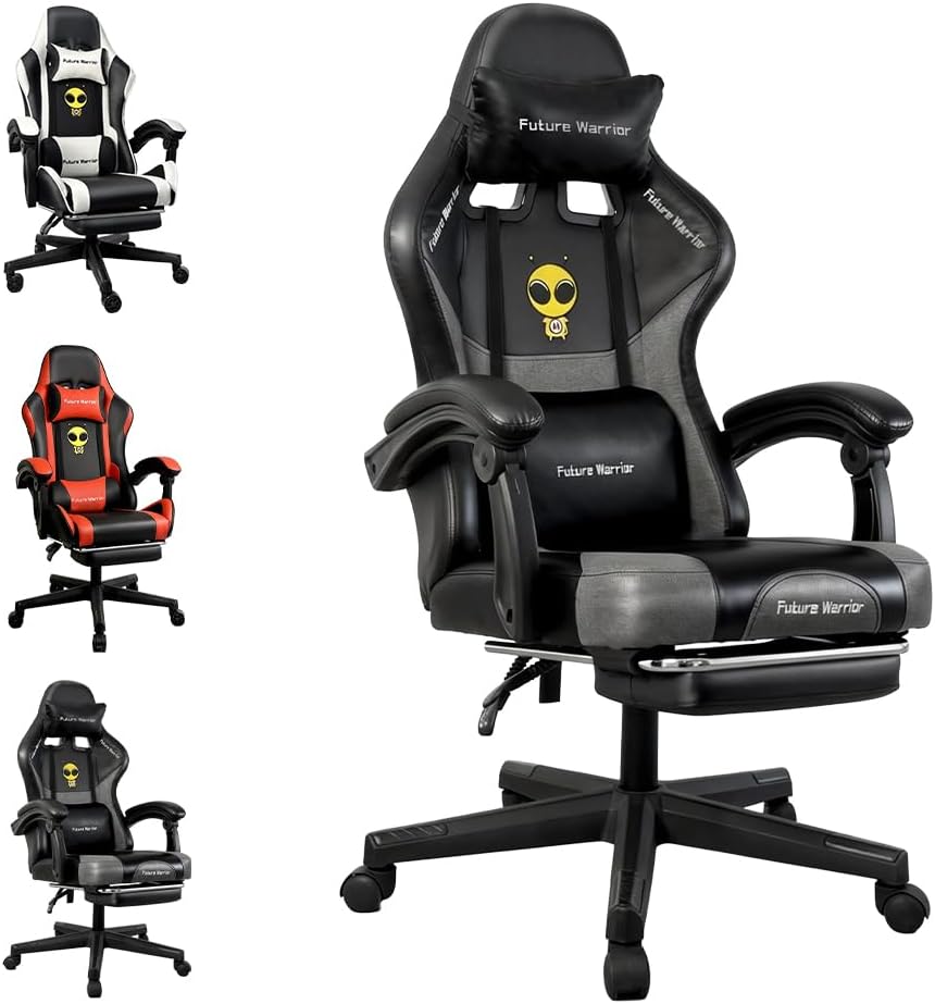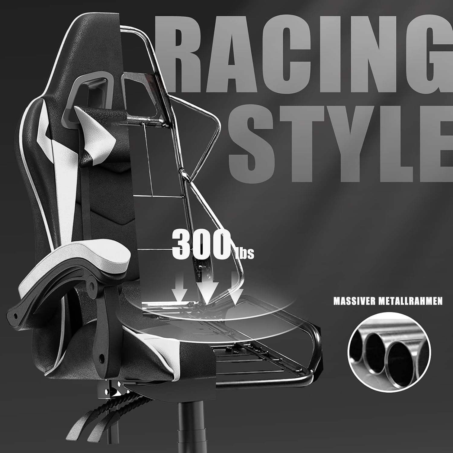 Langanhaltender Komfort: Dicke Sitzpolsterung mit Kaltformschaum sorgt für langanhaltenden Komfort – keine Rücken- oder Nackenermüdung mehr nach langem Sitzen. Das PU-Leder ist rissbeständig und löst sich nicht ab; Die robuste Struktur hält täglicher intensiver Nutzung stand und ist ideal für Gaming- und Büroszenarien.