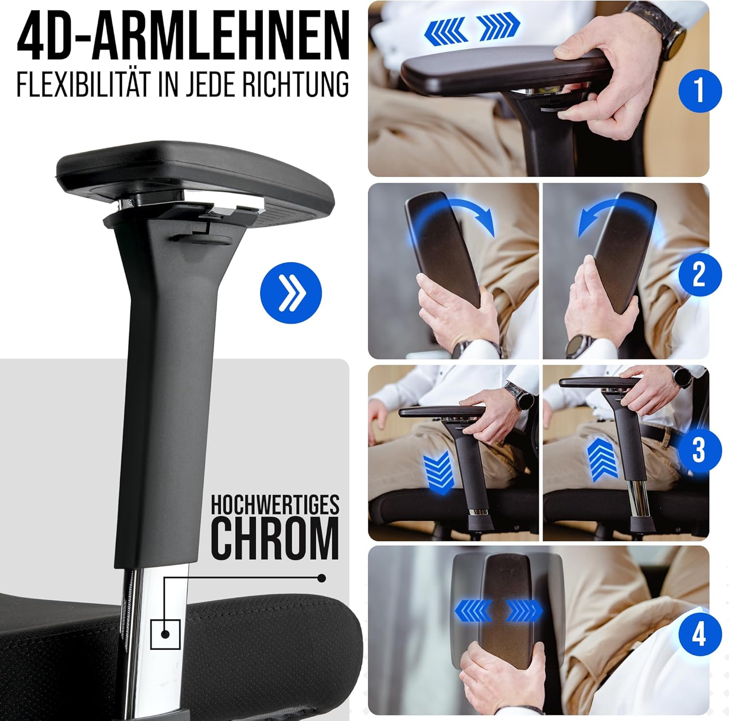 - 🕹️ Verstellbare Armlehnen: Ideal für präzises Gaming und entspanntes Sitzen