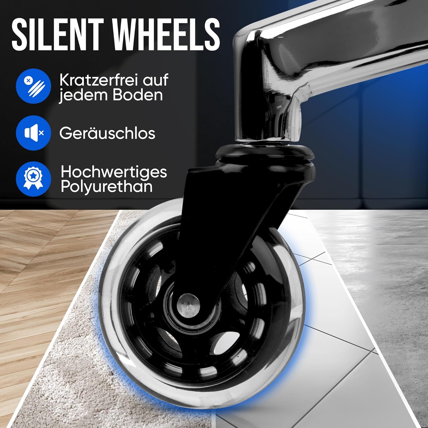 Ob Holz, Fliese oder Parzelle – mit dem exklusiven Silence aus hochwertigem Polyurethan spüren Sie keinen Untergrund mehr und bleiben auf jedem Boden kratzfrei. So leise, dass das einzige Geräusch Ihr Tippen auf der Tastatur ist.