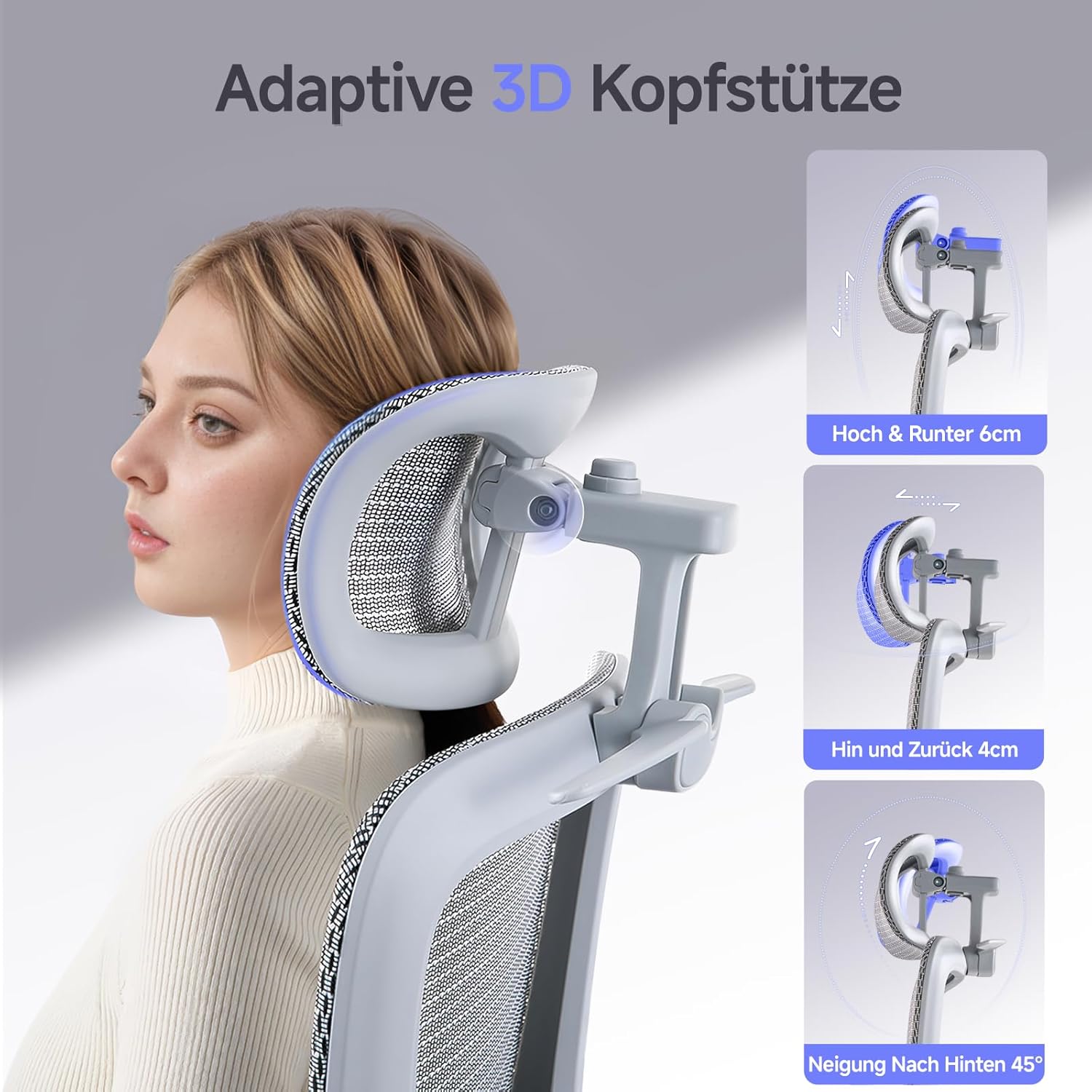 Exklusives Design mit vielfacher Verstellbarkeit: Genießen Sie die Flexibilität dank 3D-Kopfstütze und verstellbarer Rückenlehne; einzigartige Kombination aus Stil und Funktionalität für Ihr Arbeitszimmer