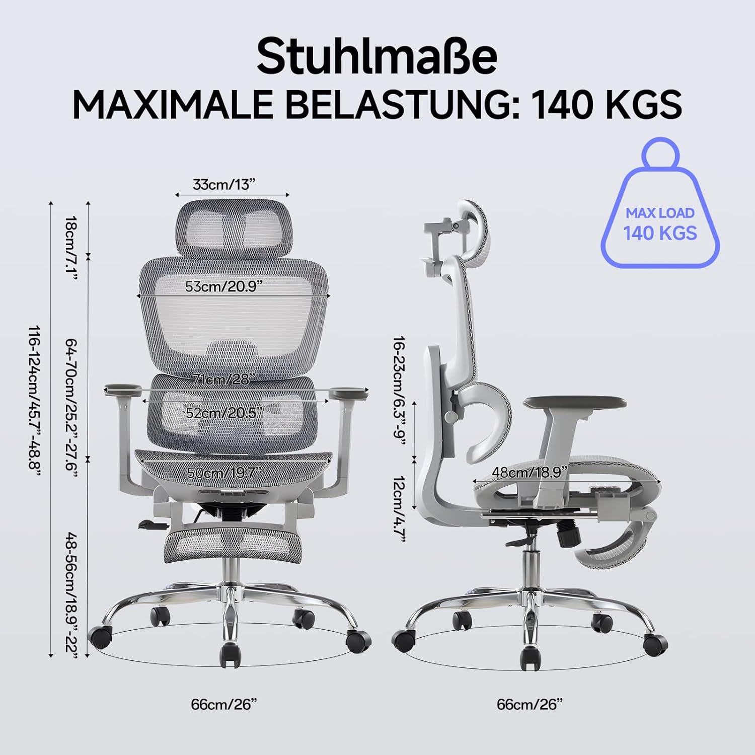 HOHE BELASTBARKEIT UND STABILITÄT: Mit einer Tragfähigkeit von 140 kg und strapazierfähigem Mesh-Material bietet dieser Schreibtischstuhl sicheren Halt und dauerhaften Komfort für den täglichen Gebrauch