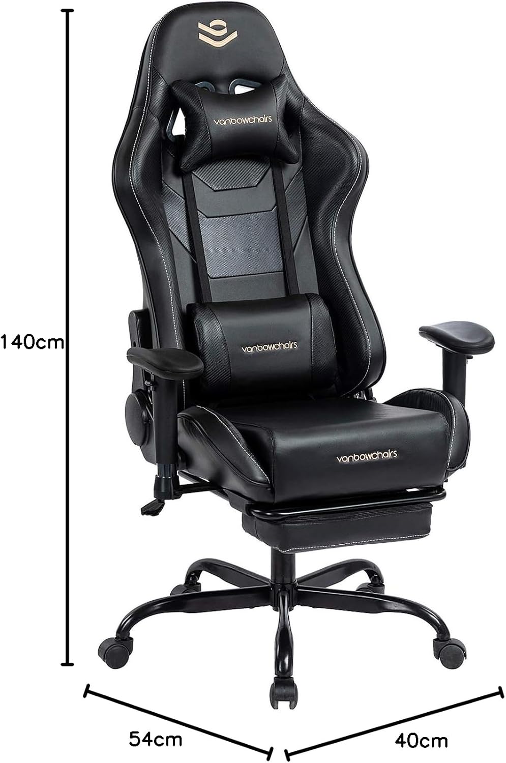 Fantasylab Gaming Chair PU Leather Gaming Chair with Footrest, Ergonomic PC Chair, Gamer Chair Adjustable Armrests, Office Chair 200 kg