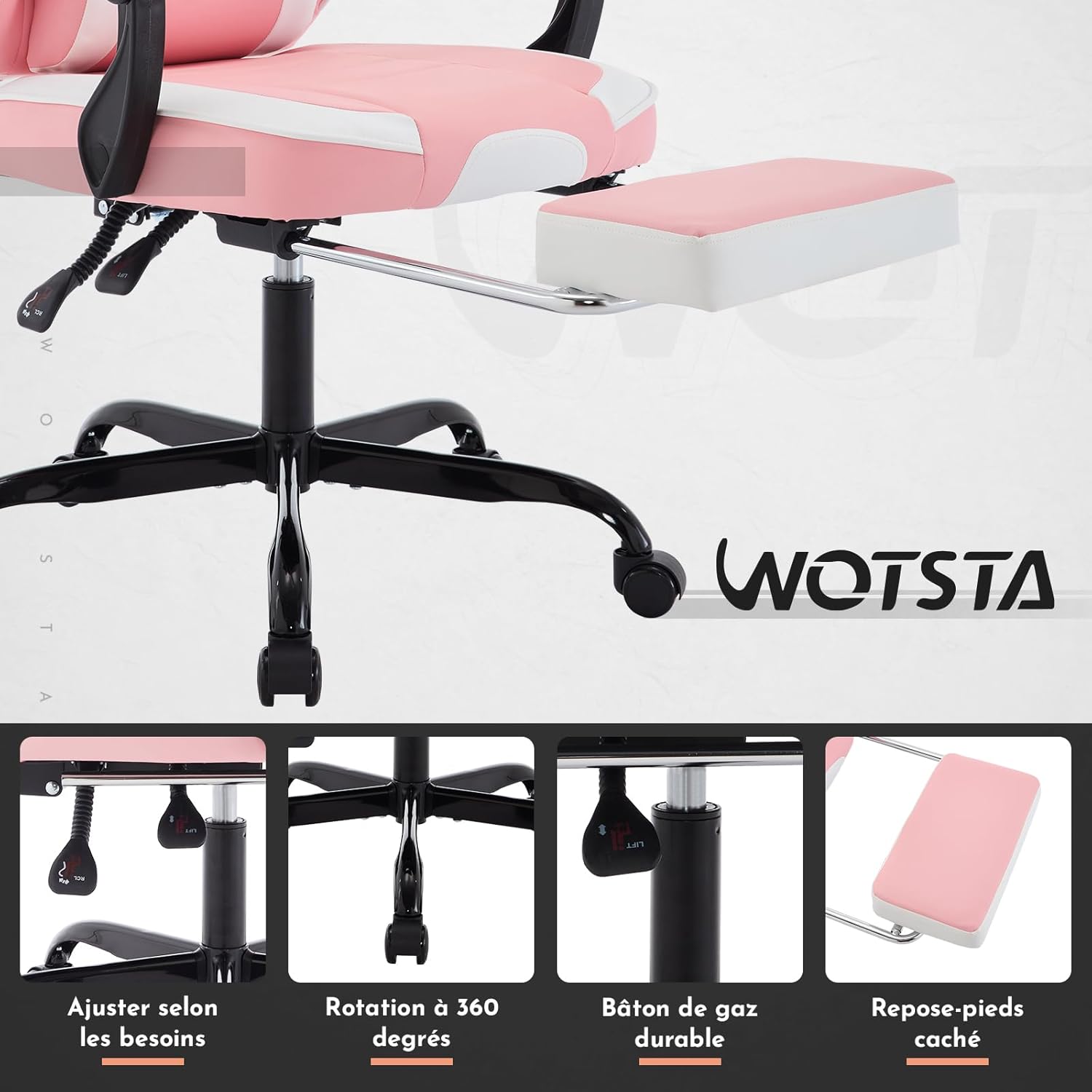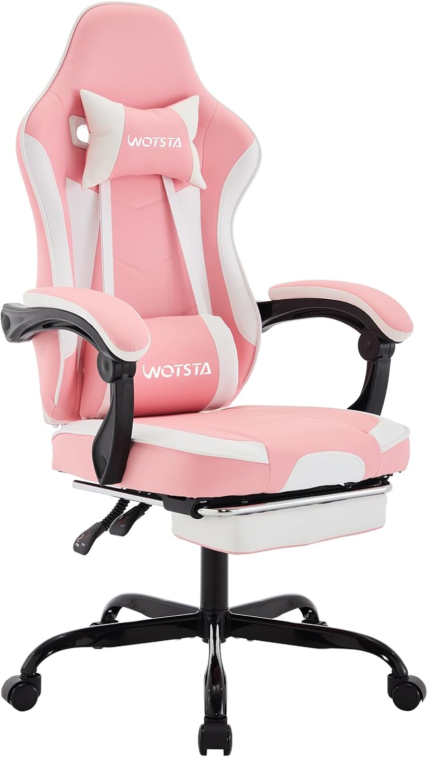 KOMFORTABLE ERFAHRUNG: Dieser ergonomische Gaming-Stuhl verfügt über eine robuste Metallbasis und leise Räder, und der Stoff besteht aus verschleißfestem und hautfreundlichem Leder. Es verbessert den Komfort, ohne zu viel Lärm zu machen.