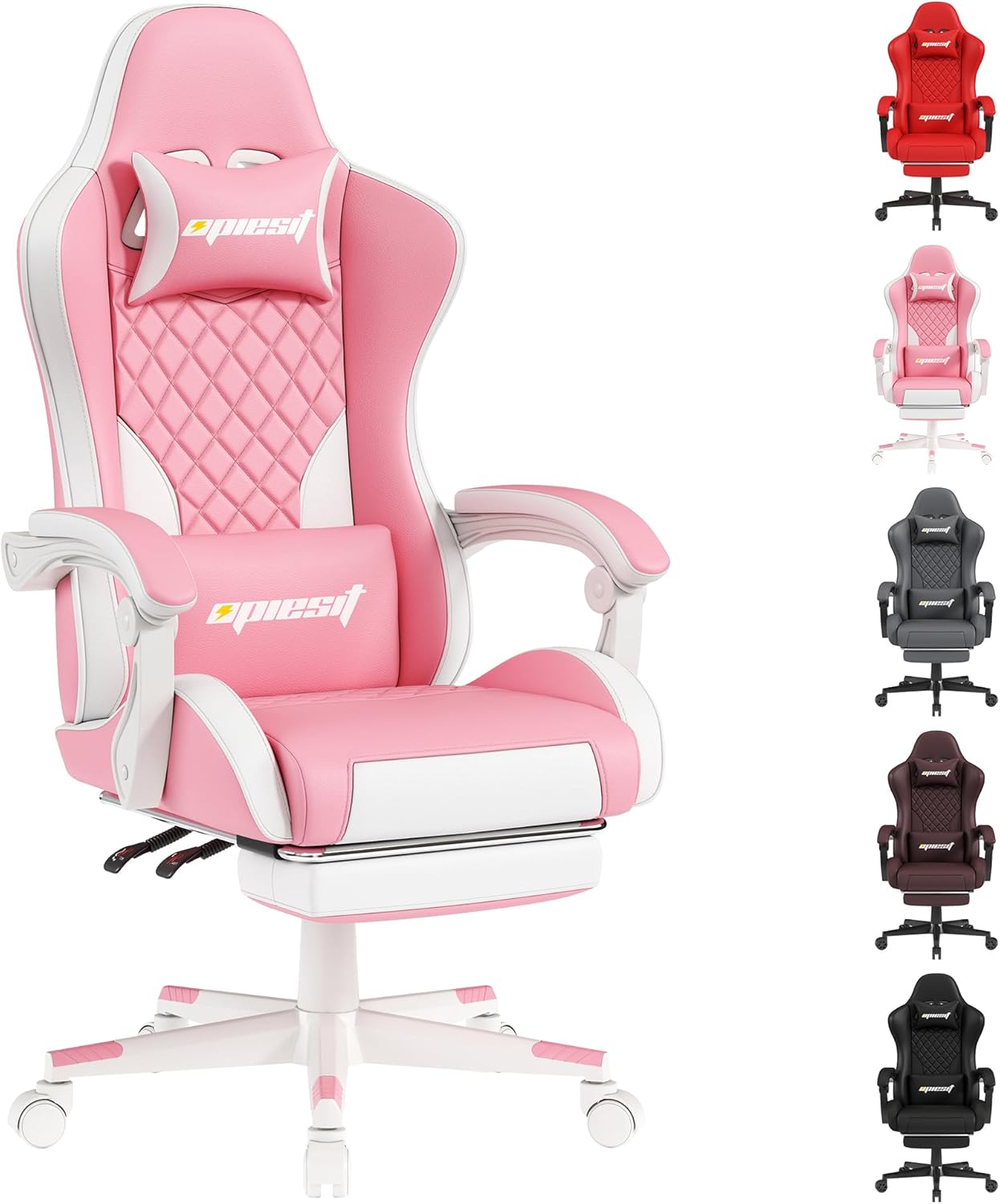 Gaming Chair Ergonomic Gaming Chair with Lumbar Support, Breathable PU Leather Office Chair, Comfortable Computer Chair, Maximum Load 200 kg, Adjustable Seat Height and Backrest (Pink)