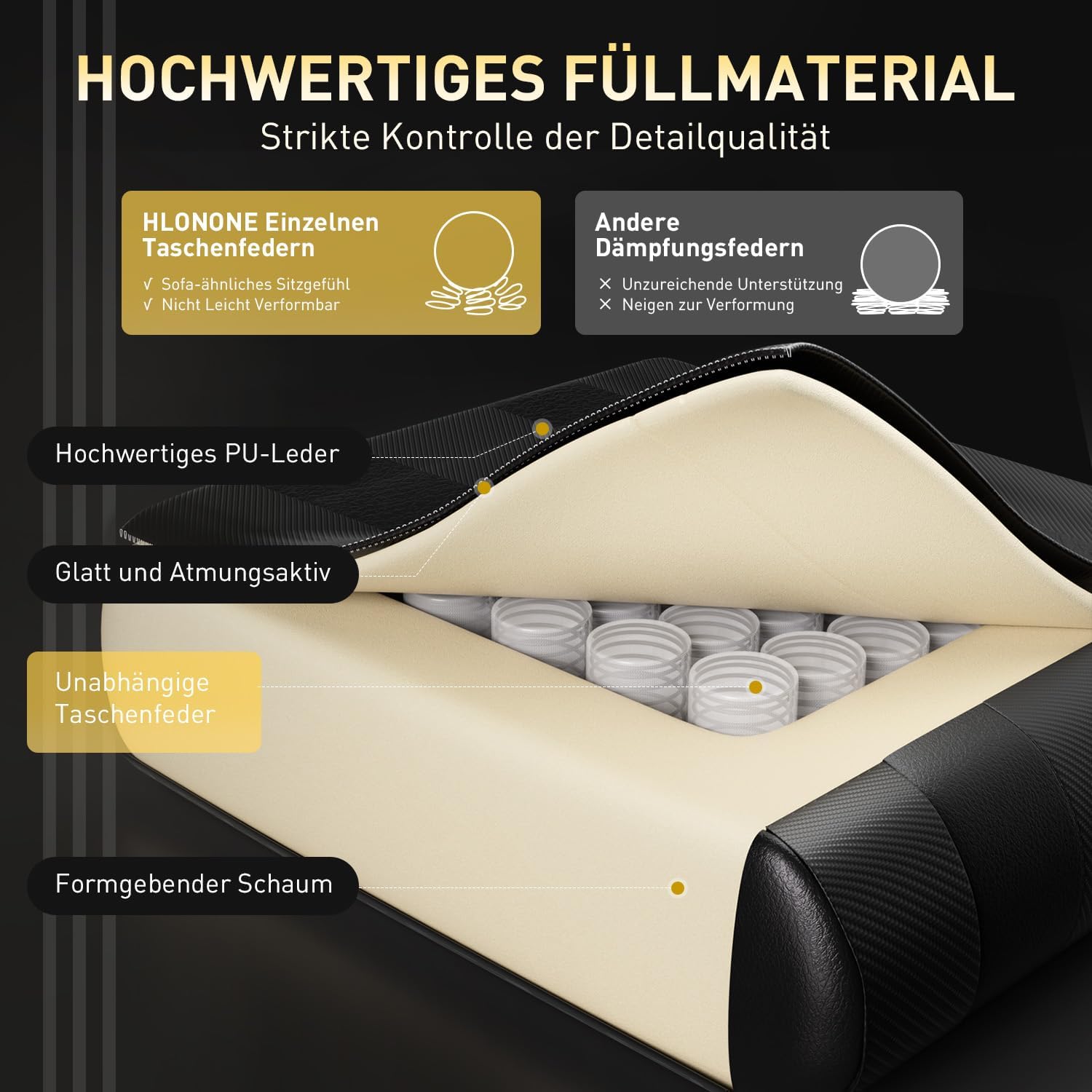 - 😌 Hochwertige Polsterung: Optimaler Komfort ohne Druckstellen