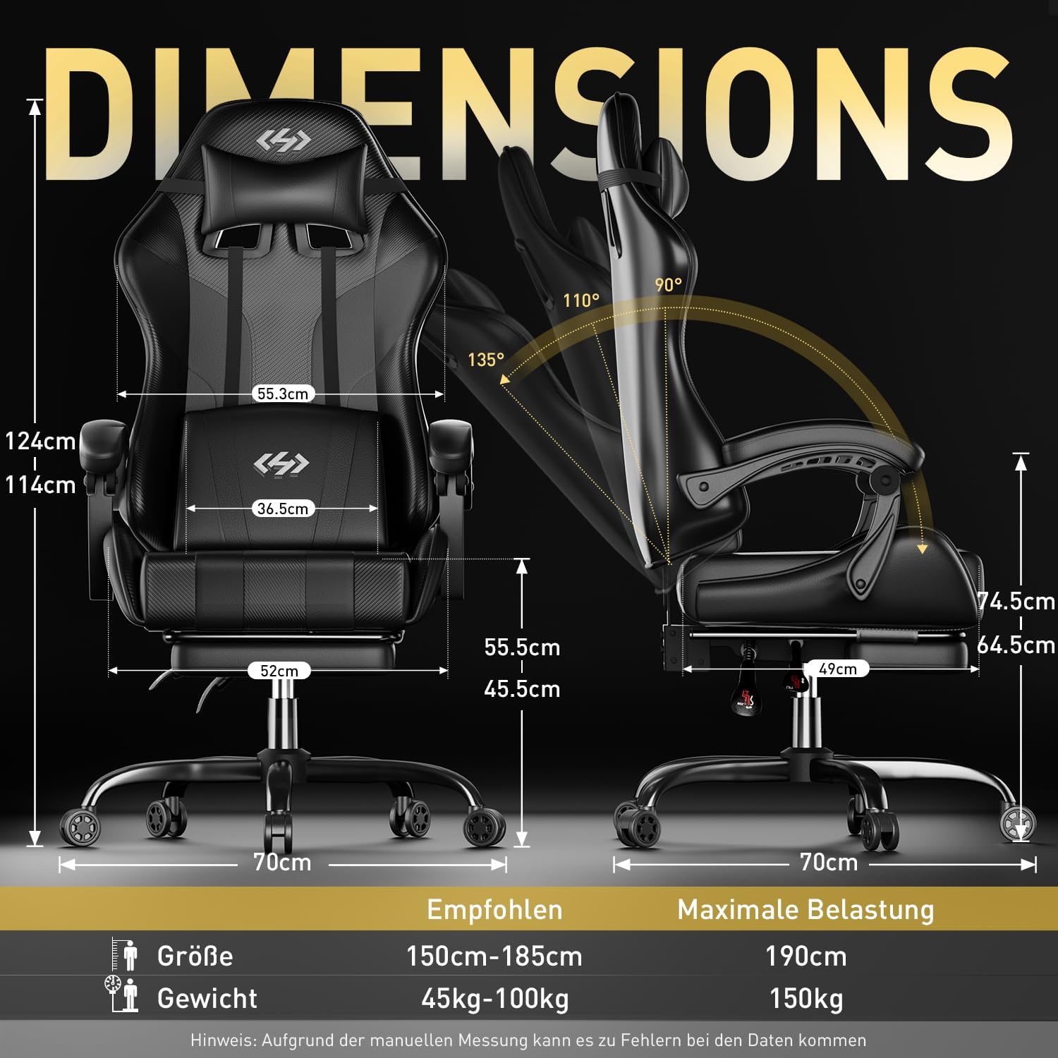 - 🕹️ Verstellbare Armlehnen: Ideal für präzises Gaming und entspanntes Sitzen