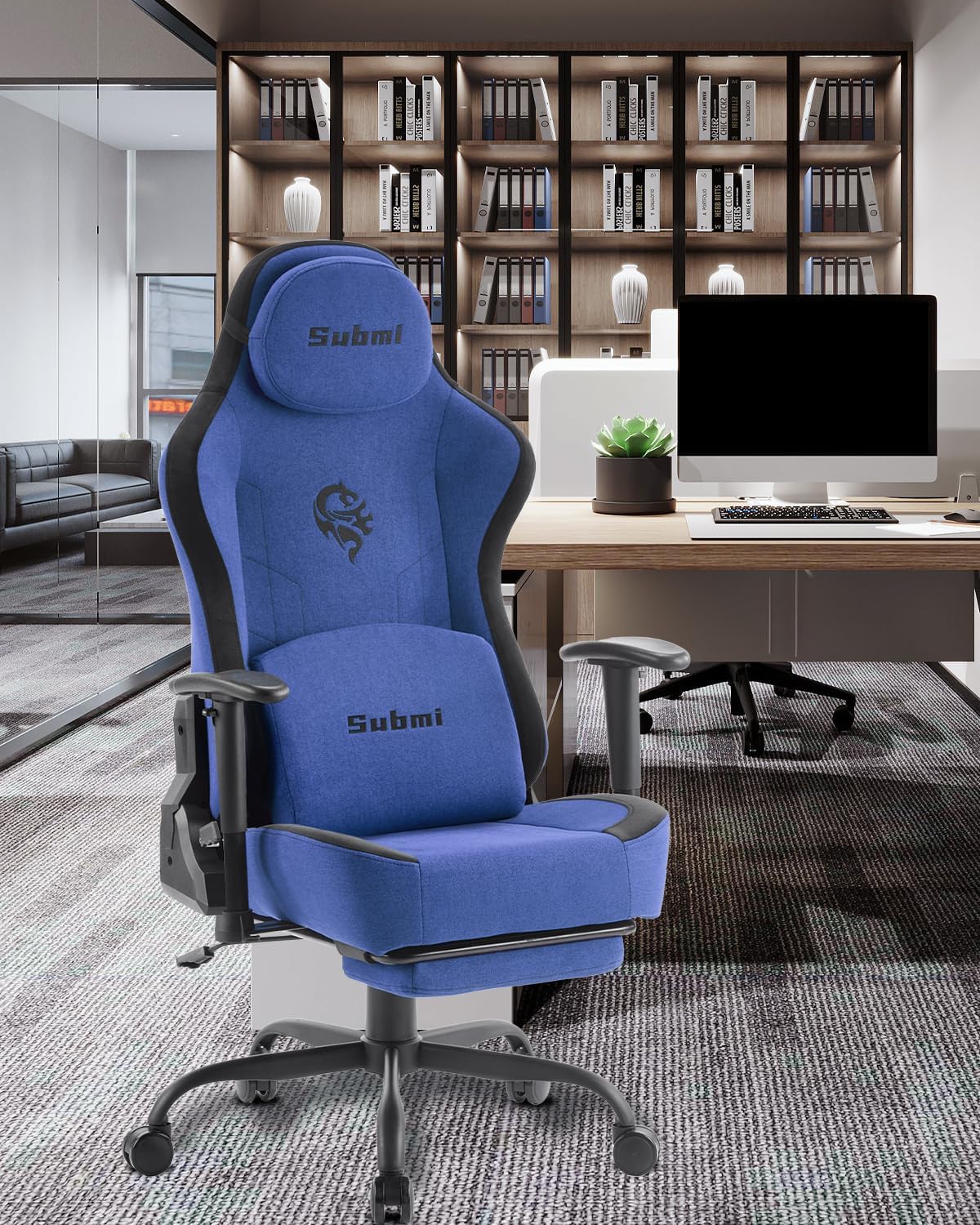 Gaming Chair, Ergonomic PC Gaming Chair, Gamer Chair with Footrest, Fabric Gaming Chair Headrest & Lumbar Support, Computer Chair for Adults, Comfortable (Blue)