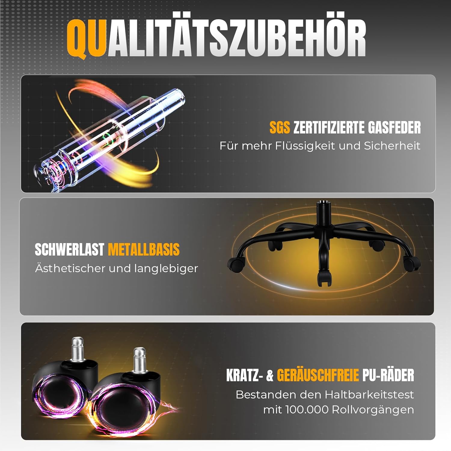 - 🕹️ Verstellbare Armlehnen: Ideal für präzises Gaming und entspanntes Sitzen