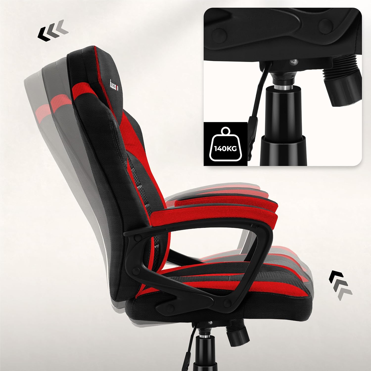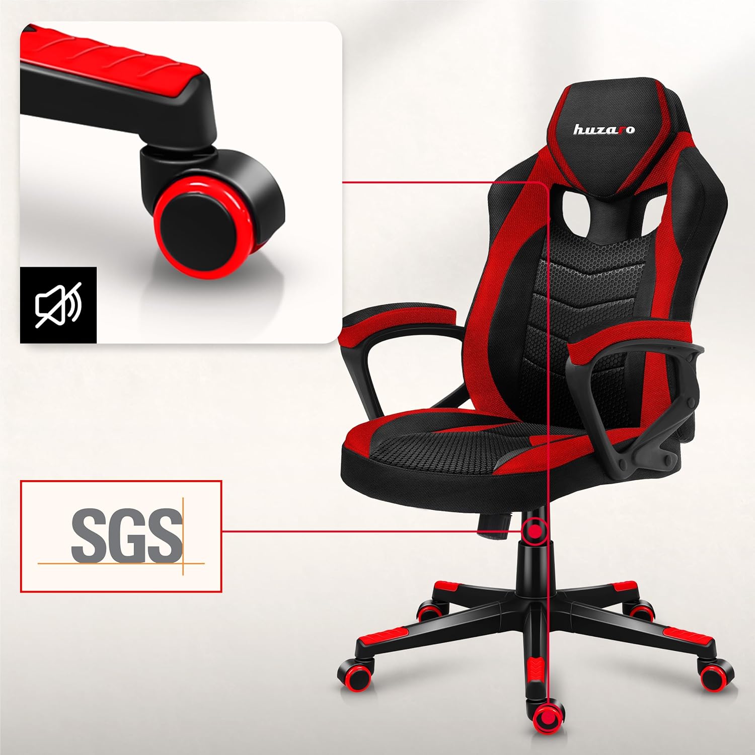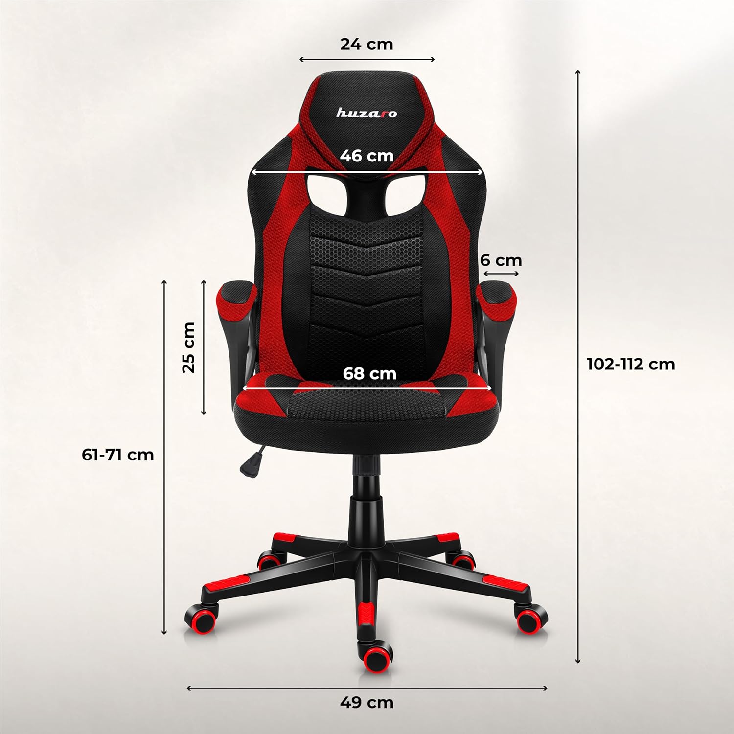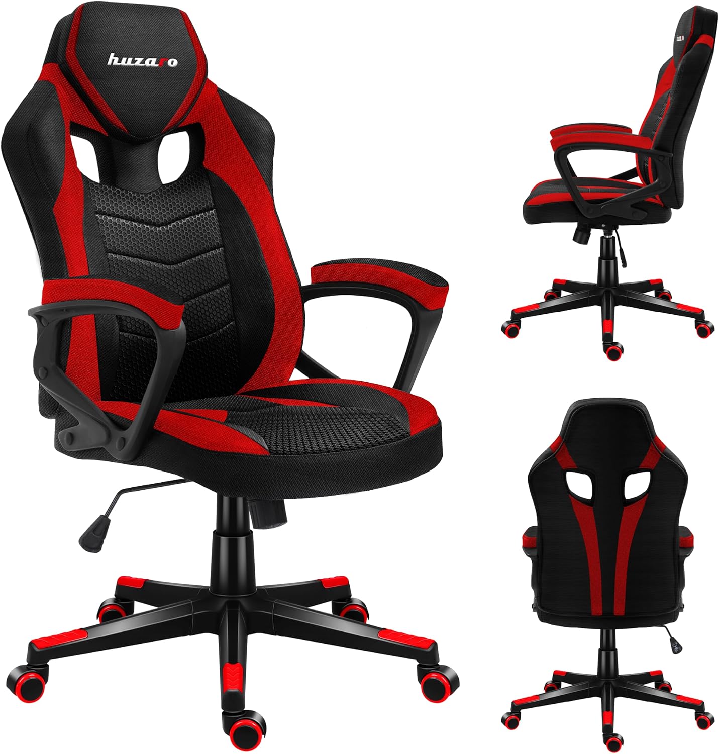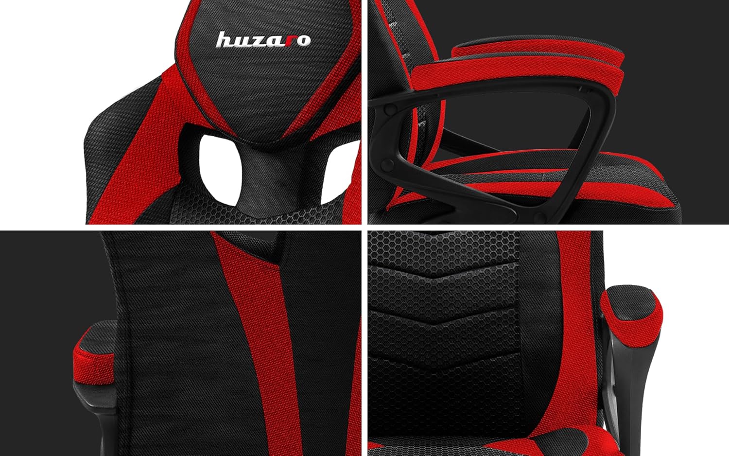 huzaro Force 2.5 Red Mesh Gaming Chair Office Chair Computer Chair PC Chair Ergonomic Gamer Height Adjustable Rotatable with Rocker Function Maximum Load 140 kg Fabric Black Red