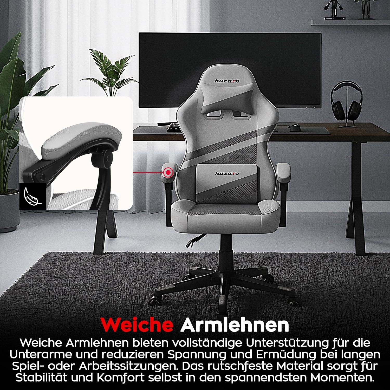 Die Armlehnen bieten maximalen Komfort beim stundenlangen Spielen oder Arbeiten – die perfekte Unterstützung für die Unterarme.