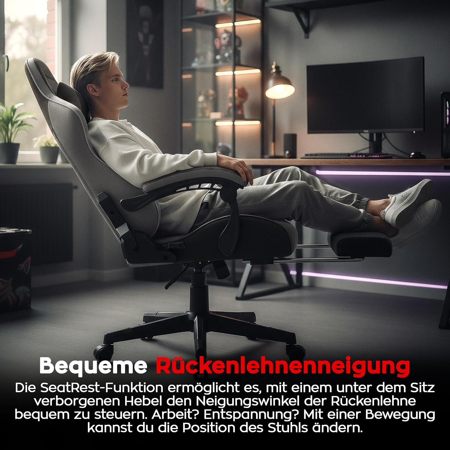 - 🕹️ Verstellbare Armlehnen: Ideal für präzises Gaming und entspanntes Sitzen