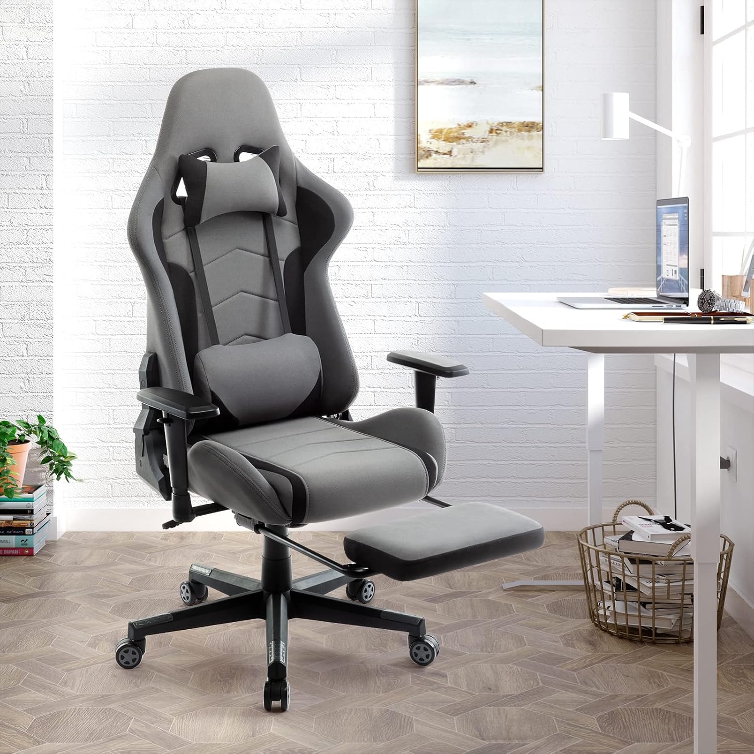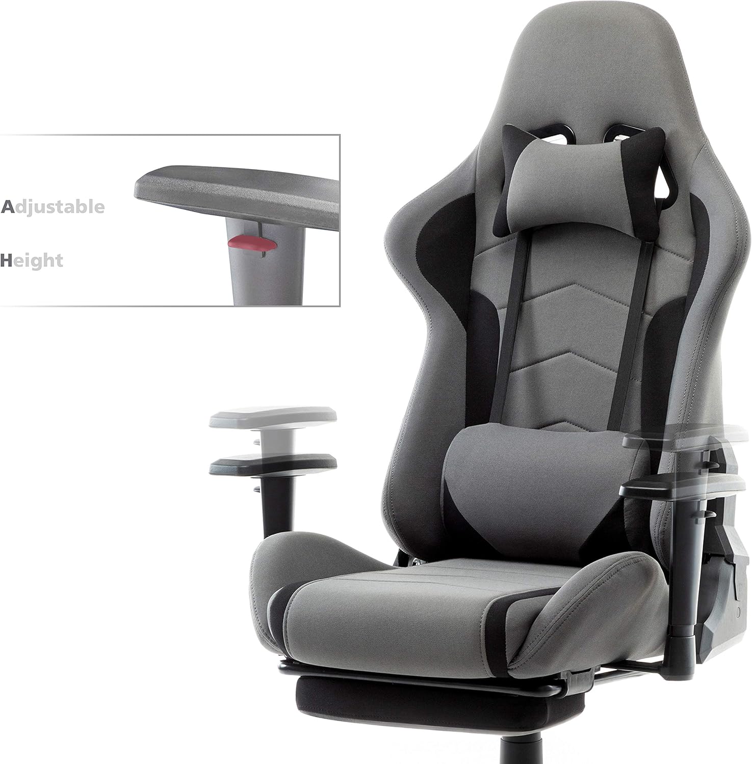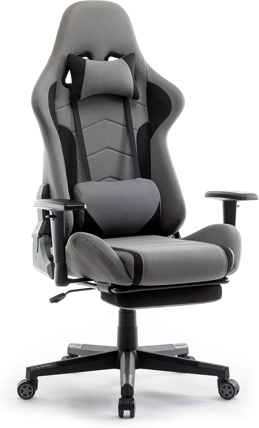 IntimaTe WM Heart Gaming Chair, Ergonomic Gamer Chair Made of Fabric, Gamer Chair with Footrest, Racing Office Chair with Adjustable Armrests, Computer Chair with Lumbar Cushion, Swivel Chair, Rocker Function, Grey