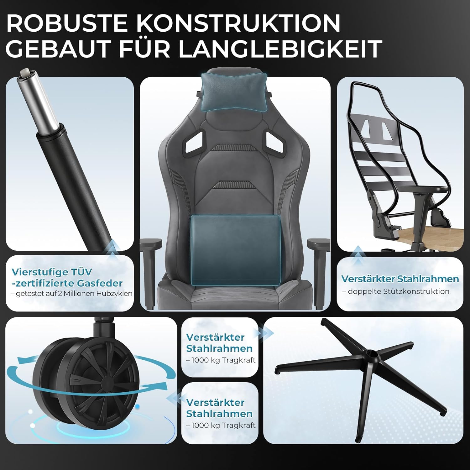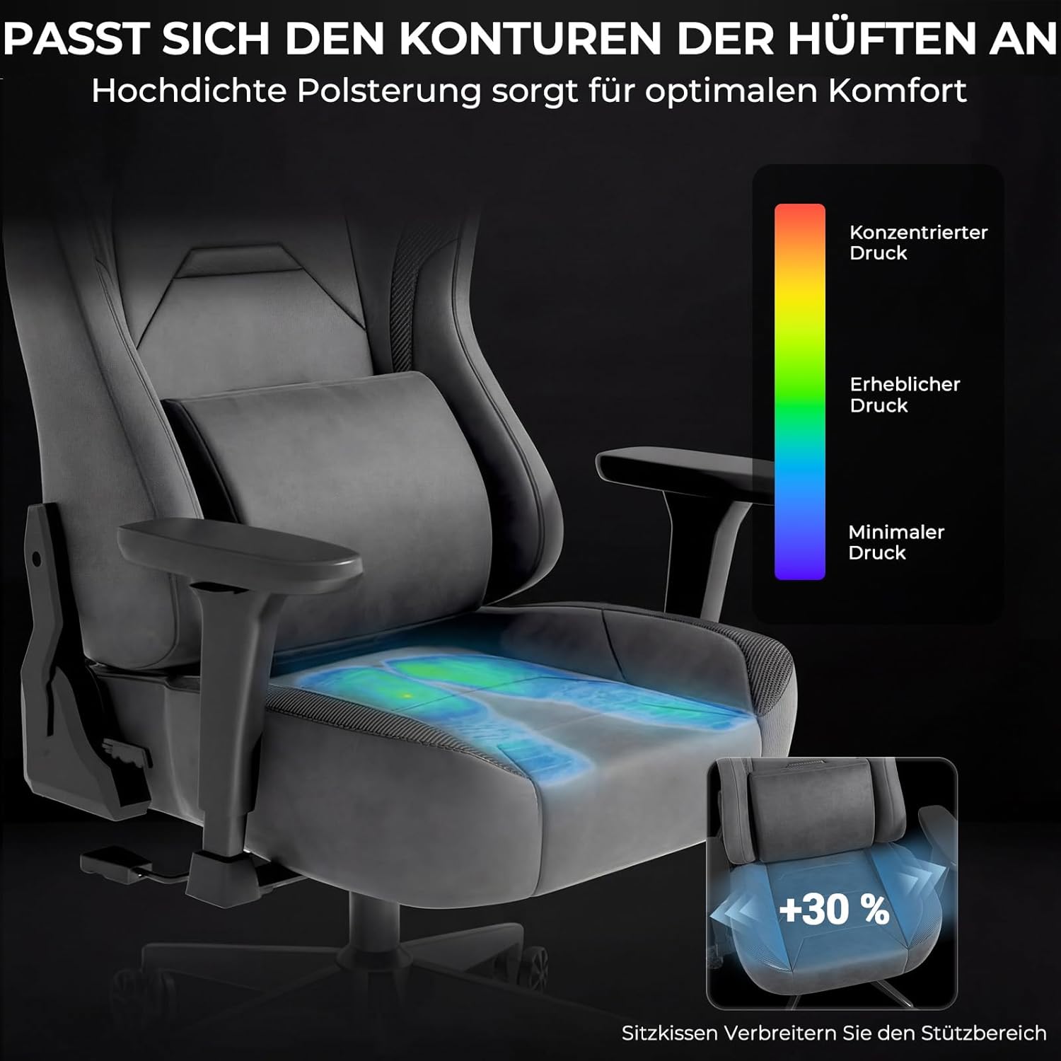 - 💺 Ergonomisches Design: Unterstützt Rücken & Haltung bei langen Gaming-Sessions