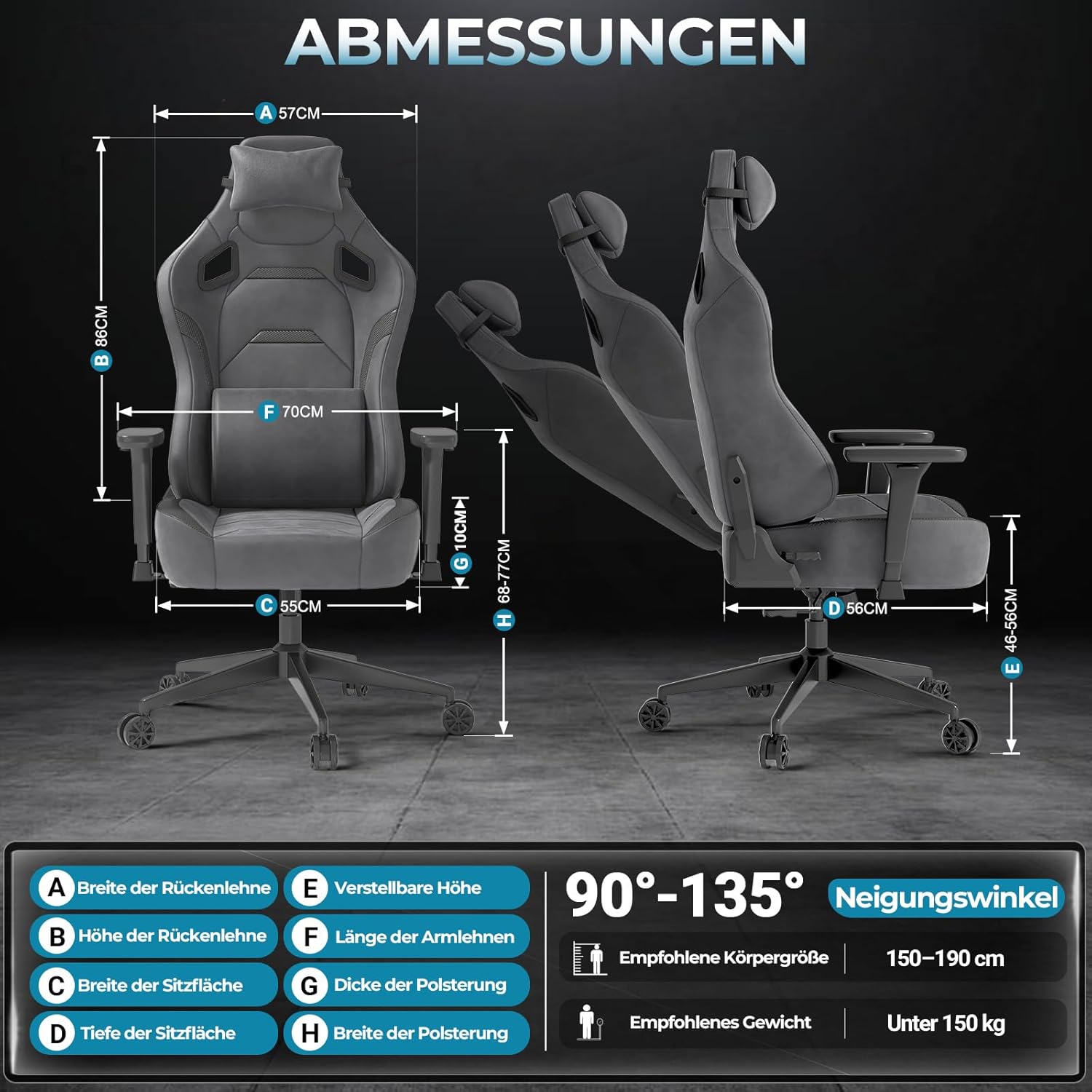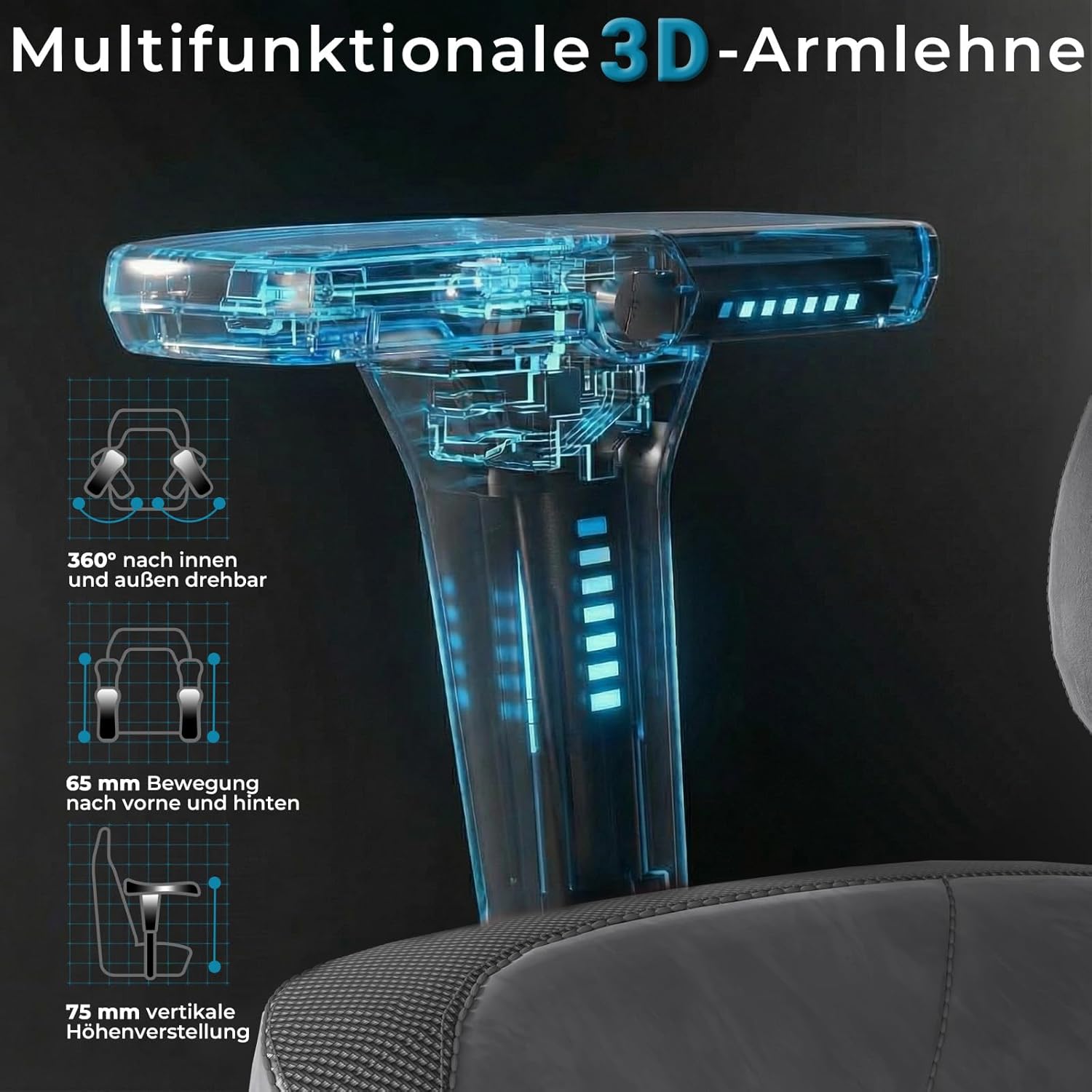- 🕹️ Verstellbare Armlehnen: Ideal für präzises Gaming und entspanntes Sitzen