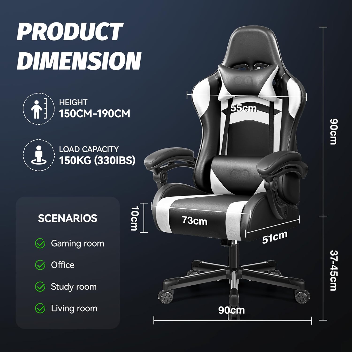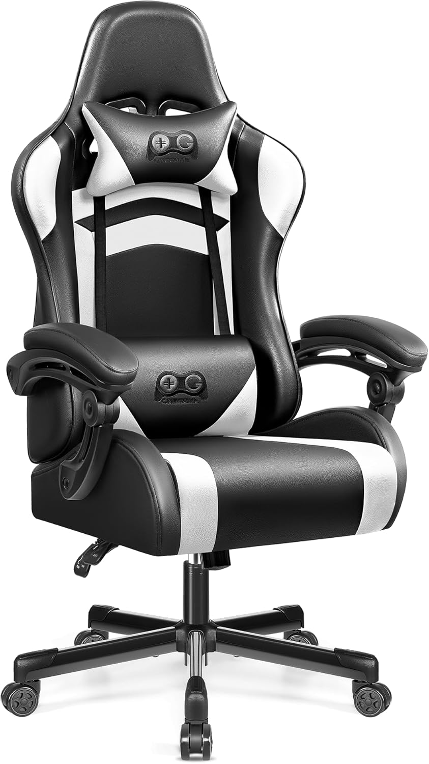 OneGame Ergonomic Gaming Chair, High Back Computer Gamer Chair, Height-Adjustable Game Chair, Racing Style Gaming Office Chair with Headrest and Lumbar Support, Black and White