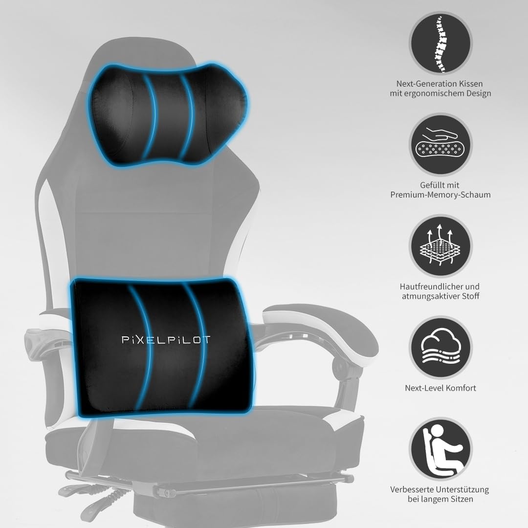 - 💺 Ergonomisches Design: Unterstützt Rücken & Haltung bei langen Gaming-Sessions