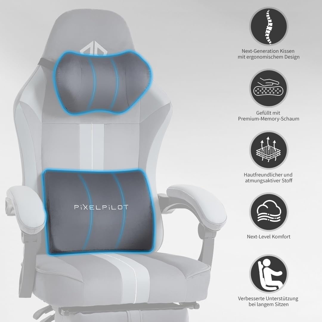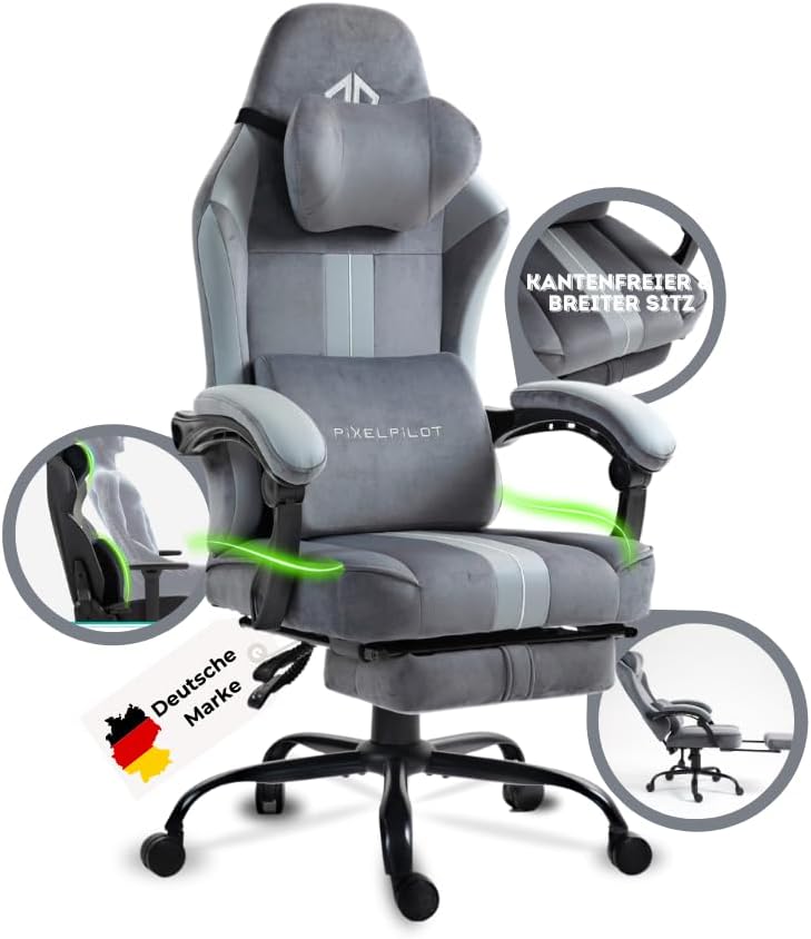 ![Gaming Chairs - PixelPilot Ergonomic Gaming Chair [Breathable Fabric] Gaming Chair with Footrest, Head and Lumbar Support, Gamer PC Chair Wide Seat, Office Chair 150 kg Load Capacity (Nebula I, Grey) – Bild 4](https://esports-stuff.de/wp-content/uploads/2026/01/51R5PrBrvdL._AC_SL1080_.jpg)