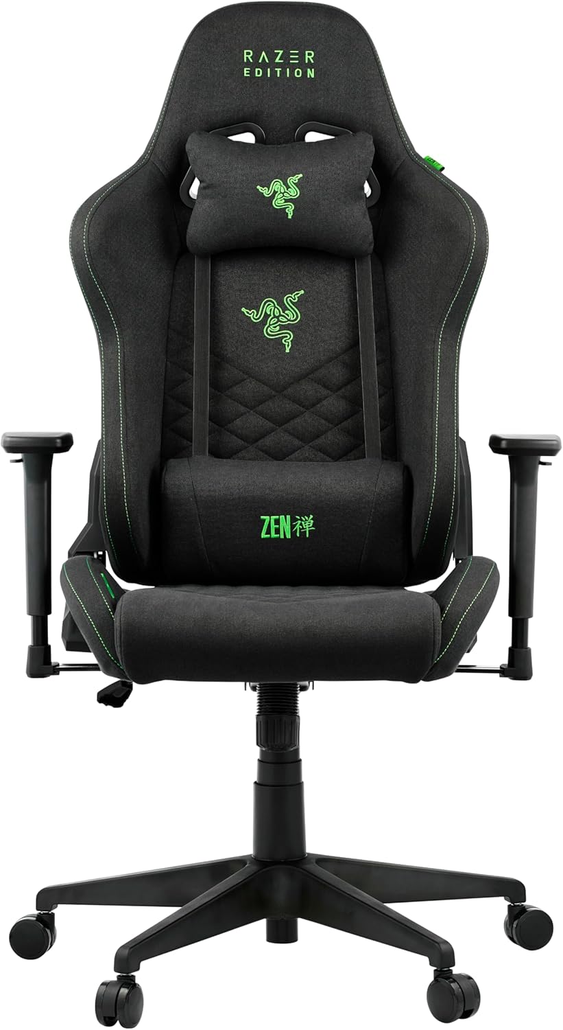 Razer Edition Tarok Natrix Cloth PC Gaming Chair Fabric – Breathable Fabric Cover, Softcoat 3D Armrests, Rocker Function, Lumbar Cushion and Pillow, up to 130 kg, Black