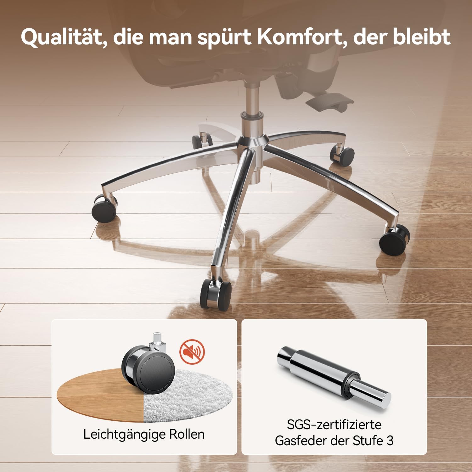 [High Quality & Easy Assembly] Jedes Teil dieses Computer-Bürostuhls wurde strengen Sicherheits- und Qualitätstests unterzogen, einschließlich Kissenaufpralltests, Armlehnen-Ermüdungstests und Tests des statischen Drucks der Stuhlfüße. Der Gaslift dieses Bürostuhls mit hoher Rückenlehne ist BIFMA- und SGS-zertifiziert und kann ein Gewicht von bis zu 150 kg tragen. Dank der einfachen Anleitung kann jeder den ergonomischen Chefsessel in nur 7 einfachen Schritten zusammenbauen.