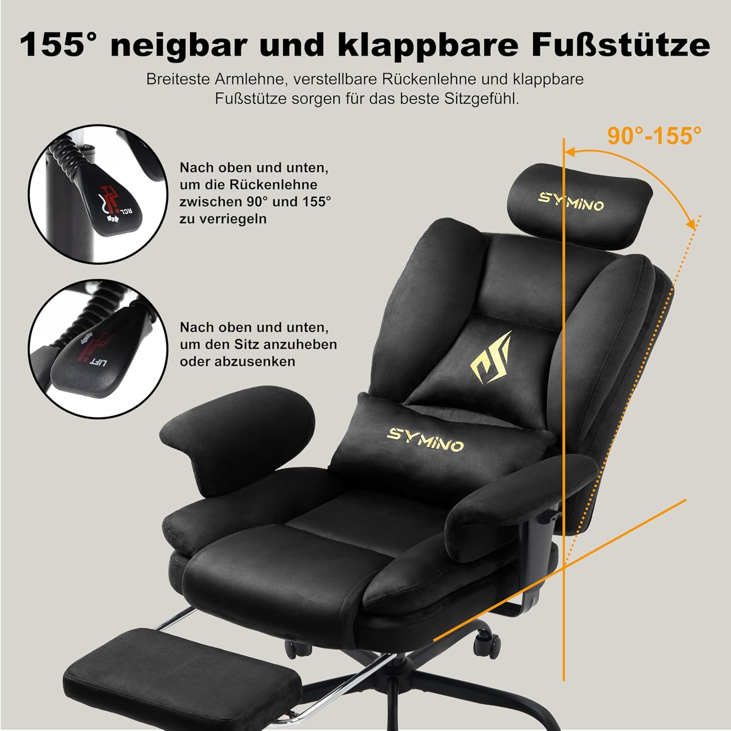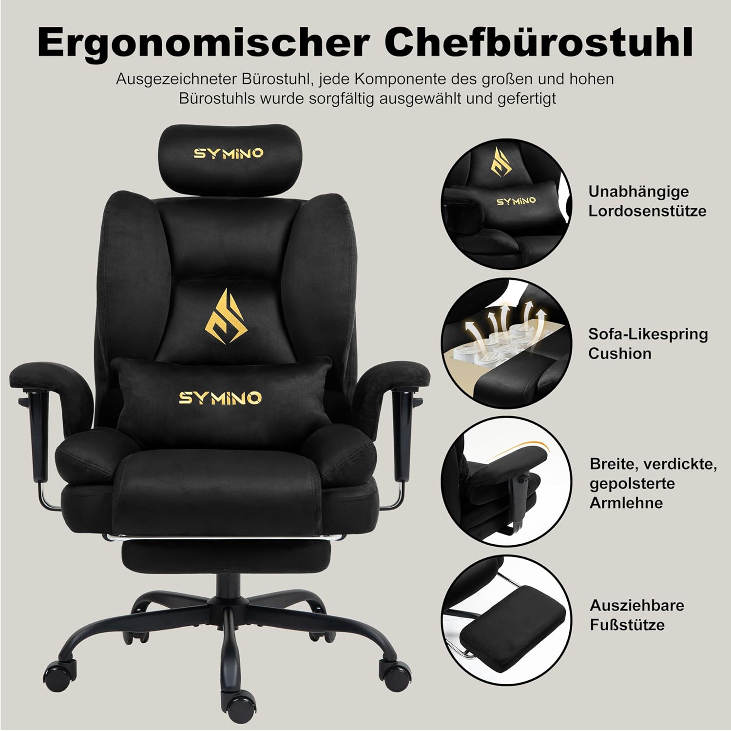 Symino Gaming Chair, Executive Chair, Office Chair, Ergonomic, Faux Suede, Sofa-like Desk Chair with Footrest, Height-Adjustable Office Chair, Computer Chair, 130 kg, Black