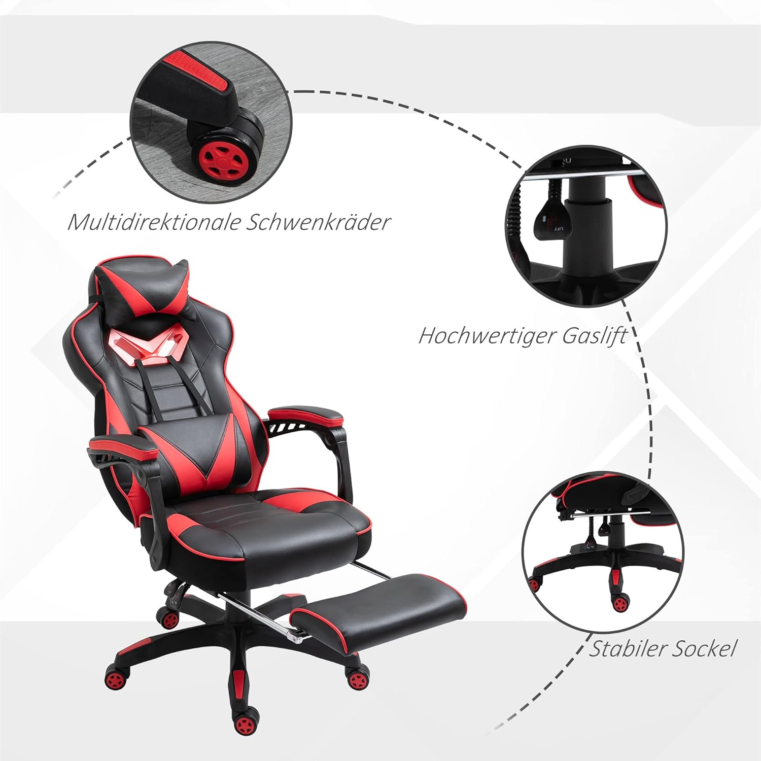 Verstellbare Funktion: verstellbarer Rückenwinkel bis zu 170 Grad, Armlehne ist verstellbar, Fußstütze auch einziehbar für ultimativen Halt und Komfort. 360°-Schwenkfunktion gibt Ihnen einen Abstand vom Computer zum Bücherregal.
